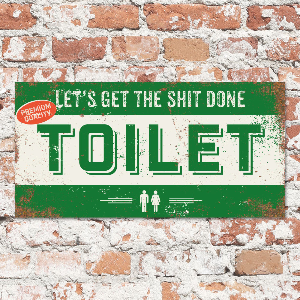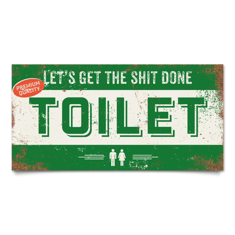 Mooie geel, groen en wit “vintage” bord (Engelstalig reclamebord) voor op de toiletdeur. Het bord wordt geplakt op dibond (2 lagen aluminium met zwarte kern). Dit bord wordt geleverd met plakgum zodat je het eenvoudig aan de deur kun bevestigen. Erg origineel en stoer op deur van het toilet.