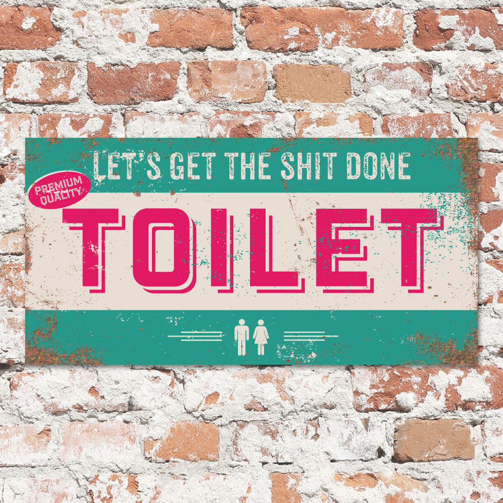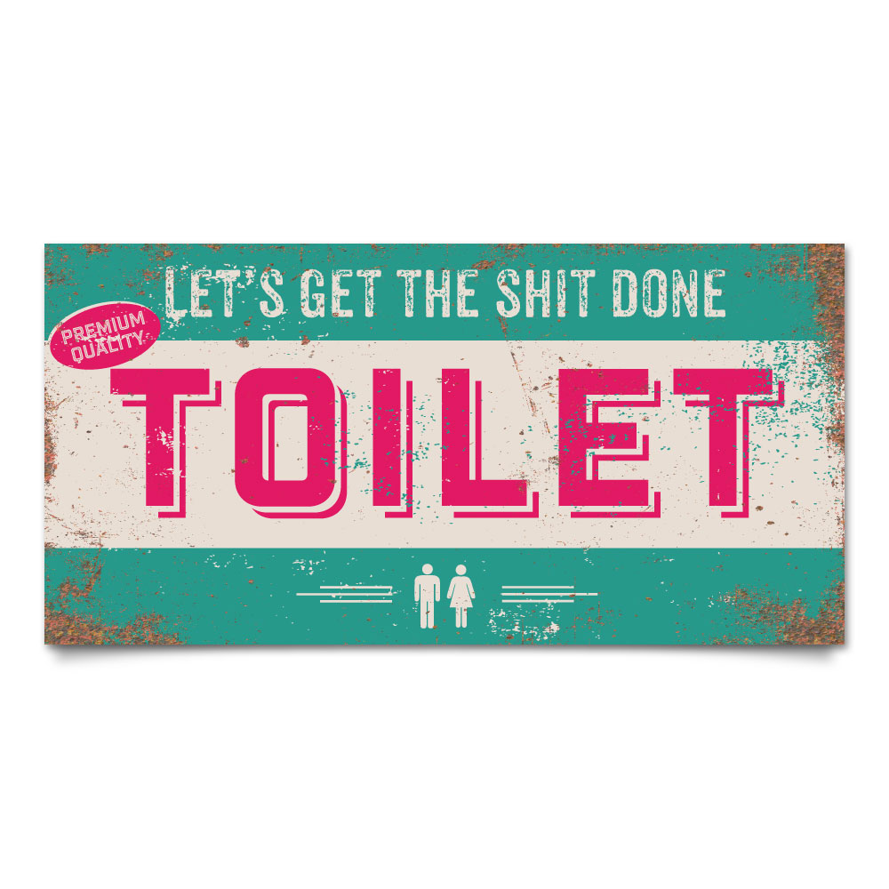 Mooie mint, roze en wit “vintage” bord (Engelstalig reclamebord) voor op de toiletdeur. Het bord wordt geplakt op dibond (2 lagen aluminium met zwarte kern). Dit bord wordt geleverd met plakgum zodat je het eenvoudig aan de deur kun bevestigen. Erg origineel en stoer op deur van het toilet.