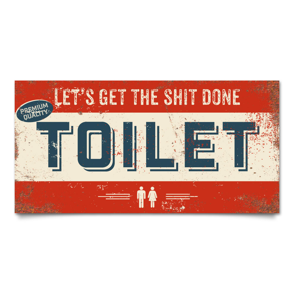 Mooie rood, blauw en wit “vintage” bord (Engelstalig reclamebord) voor op de toiletdeur. Het bord wordt geplakt op dibond (2 lagen aluminium met zwarte kern). Dit bord wordt geleverd met plakgum zodat je het eenvoudig aan de deur kun bevestigen. Erg origineel en stoer op deur van het toilet.