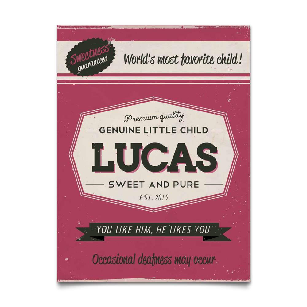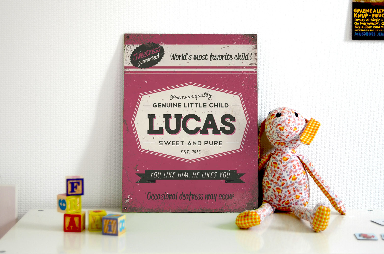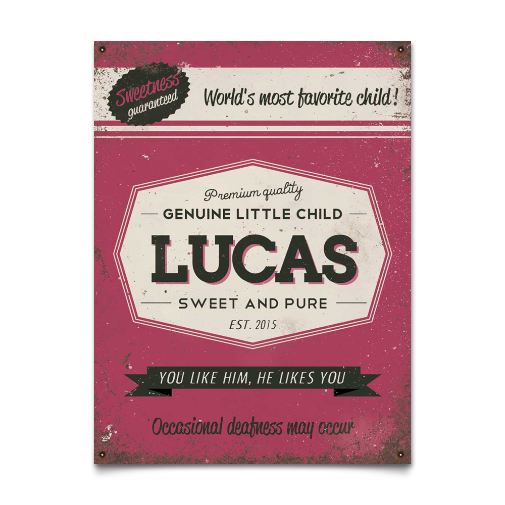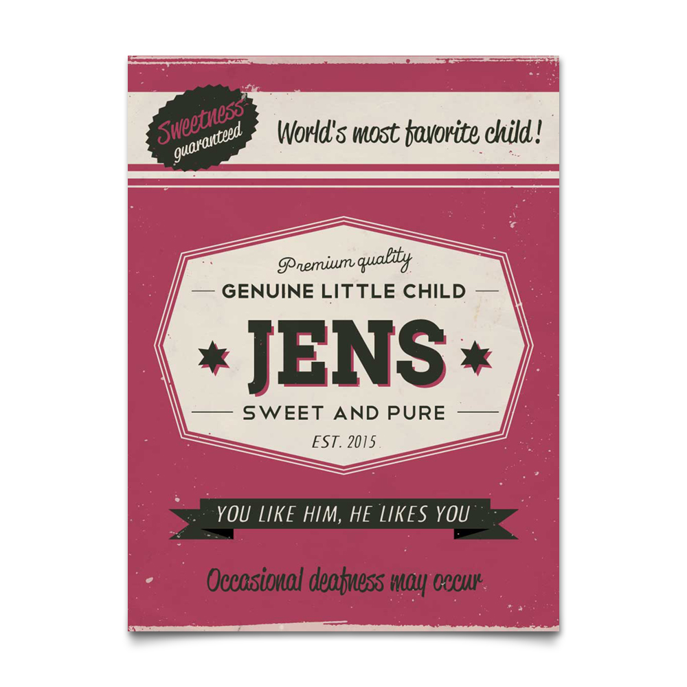 Mooie donker roze “vintage” geboortebord (Engelstalig reclamebord) met de naam en geboortedatum van uw kind. Het geboortebord wordt geplakt op dibond (2 lagen aluminium met zwarte kern). Alle formaten worden met een handig ophanghaakje geleverd.