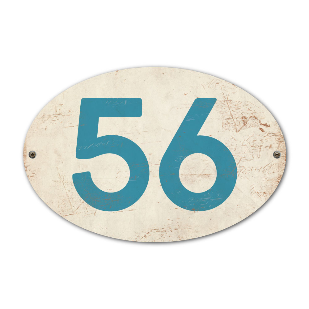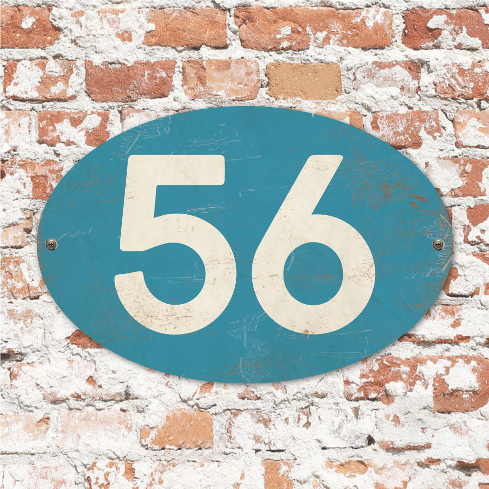 Mooi ovaal blauw wit “vintage” huisnummerbordje. Stoer en origineel huisnummerbordje voor bij de voordeur van jouw huis. Maar natuurlijk ook leuk en origineel als cadeau voor iemand die net verhuisd is (housewarming). Het huisnummerbordje staat natuurlijk ook tof als cijferbord in je interieur.