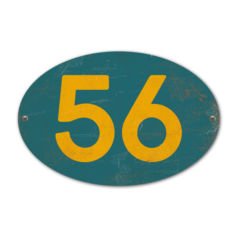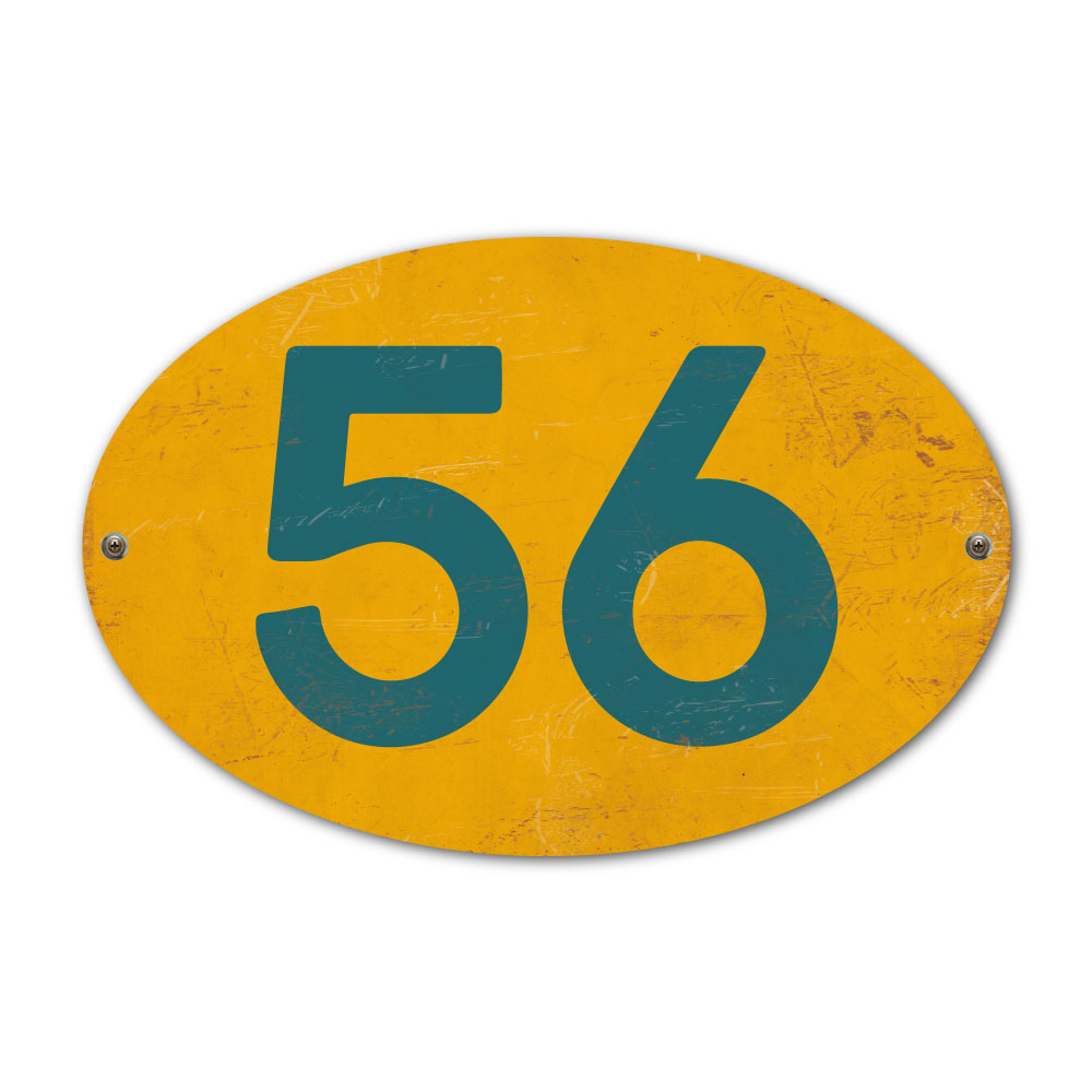 Mooi ovaal geel blauw “vintage” huisnummerbordje. Stoer en origineel huisnummerbordje voor bij de voordeur van jouw huis. Maar natuurlijk ook leuk en origineel als cadeau voor iemand die net verhuisd is (housewarming). Het huisnummerbordje staat natuurlijk ook tof als cijferbord in je interieur.