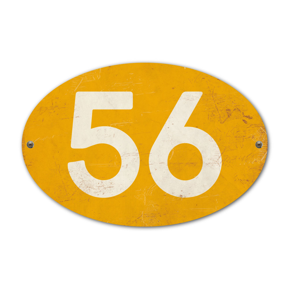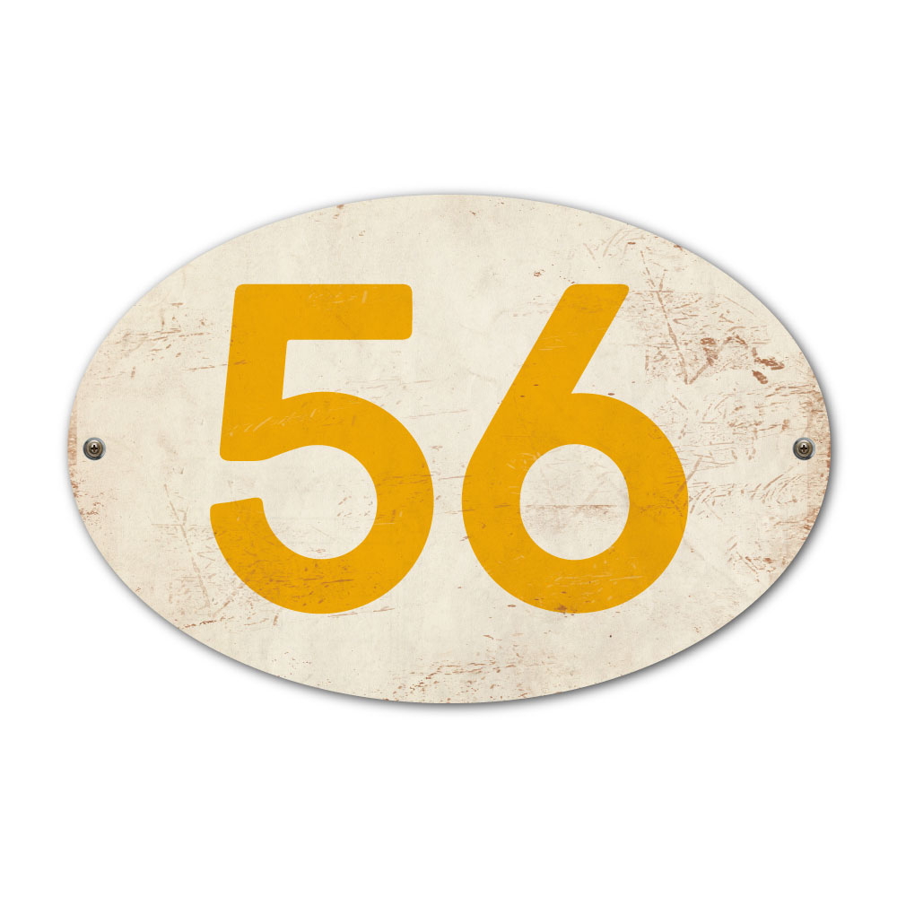 Mooi ovaal geel wit “vintage” huisnummerbordje. Stoer en origineel huisnummerbordje voor bij de voordeur van jouw huis. Maar natuurlijk ook leuk en origineel als cadeau voor iemand die net verhuisd is (housewarming). Het huisnummerbordje staat natuurlijk ook tof als cijferbord in je interieur.