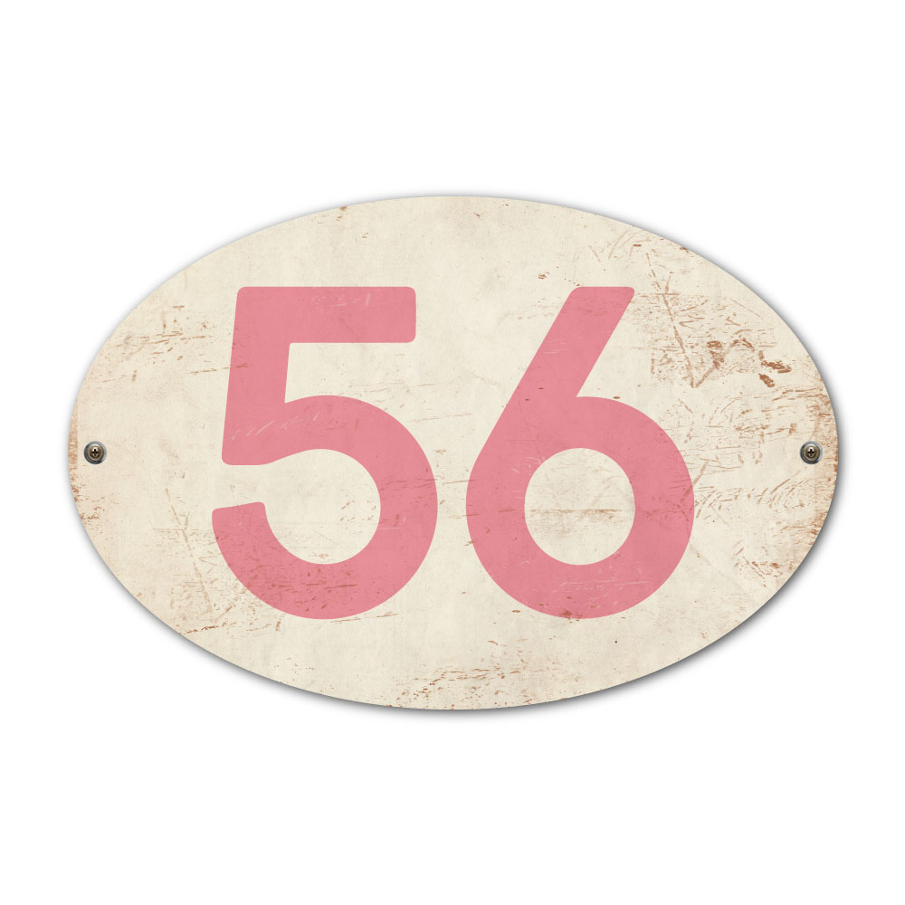 Mooi ovaal roze “vintage” huisnummerbordje. Stoer en origineel huisnummerbordje voor bij de voordeur van jouw huis. Maar natuurlijk ook leuk en origineel als cadeau voor iemand die net verhuisd is (housewarming). Het huisnummerbordje staat natuurlijk ook tof als cijferbord in je interieur.