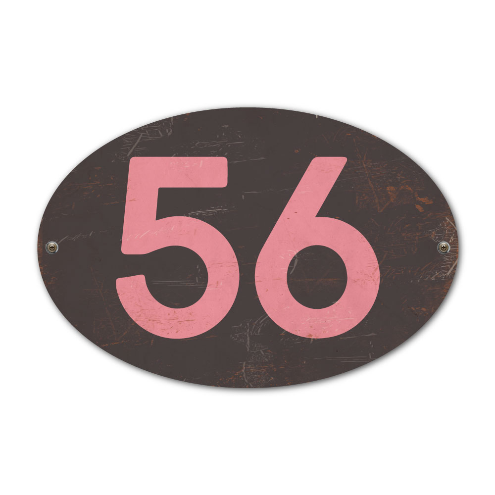 Mooi ovaal roze zwart “vintage” huisnummerbordje. Stoer en origineel huisnummerbordje voor bij de voordeur van jouw huis. Maar natuurlijk ook leuk en origineel als cadeau voor iemand die net verhuisd is (housewarming). Het huisnummerbordje staat natuurlijk ook tof als cijferbord in je interieur.