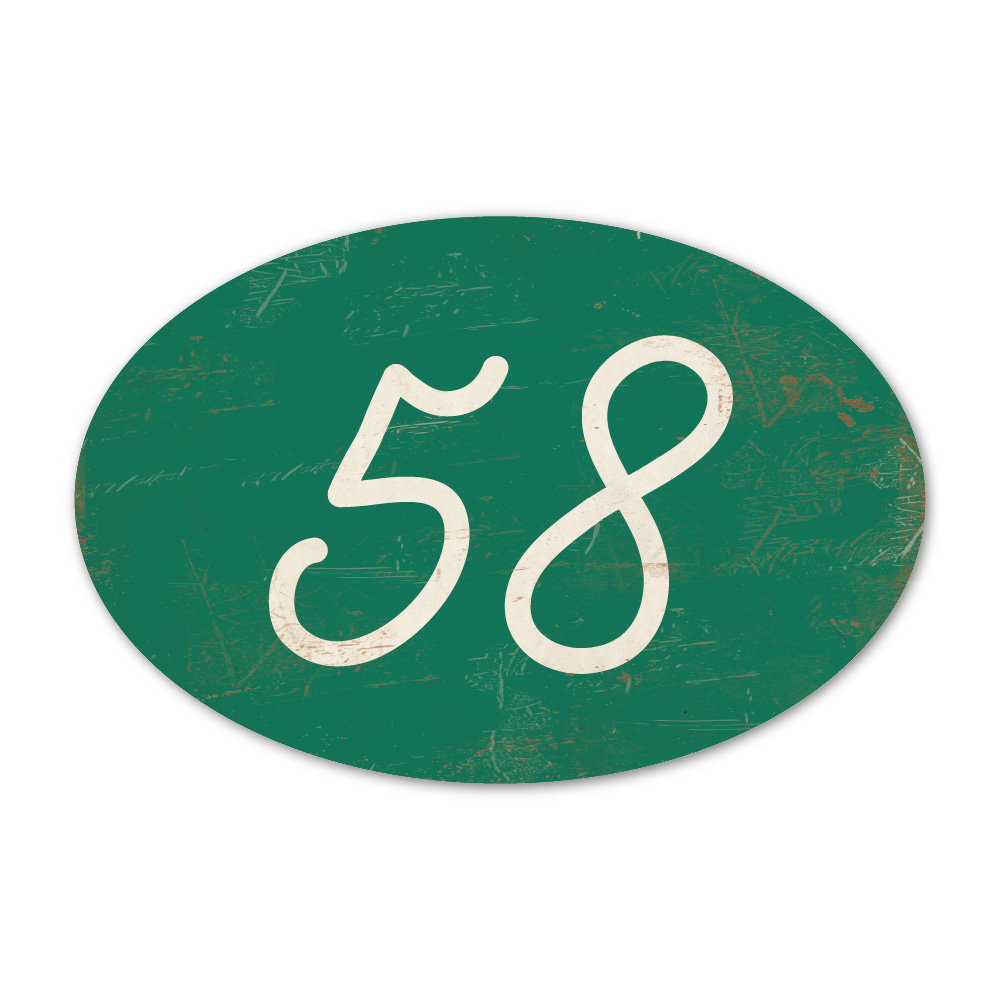 Mooi ovaal donker groen “vintage” huisnummerbordje. Stoer en origineel huisnummerbordje voor bij de voordeur van jouw huis. Maar natuurlijk ook leuk en origineel als cadeau voor iemand die net verhuisd is (housewarming). Het huisnummerbordje staat natuurlijk ook tof als cijferbord in je interieur.