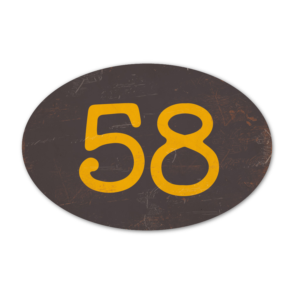 Mooi ovaal geel zwart “vintage” huisnummerbordje. Stoer en origineel huisnummerbordje voor bij de voordeur van jouw huis. Maar natuurlijk ook leuk en origineel als cadeau voor iemand die net verhuisd is (housewarming). Het huisnummerbordje staat natuurlijk ook tof als cijferbord in je interieur.