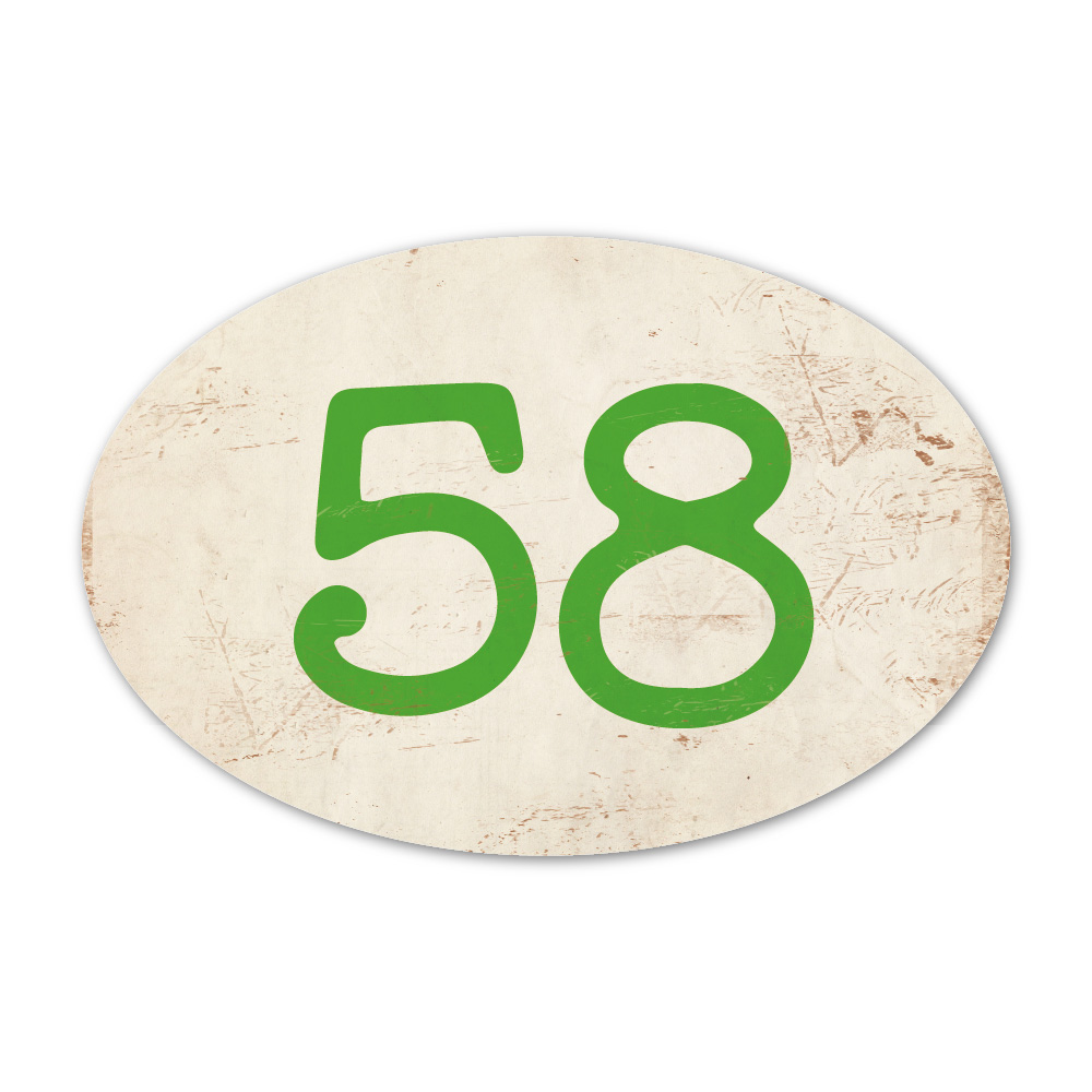 Mooi ovaal groen “vintage” huisnummerbordje. Stoer en origineel huisnummerbordje voor bij de voordeur van jouw huis. Maar natuurlijk ook leuk en origineel als cadeau voor iemand die net verhuisd is (housewarming). Het huisnummerbordje staat natuurlijk ook tof als cijferbord in je interieur.