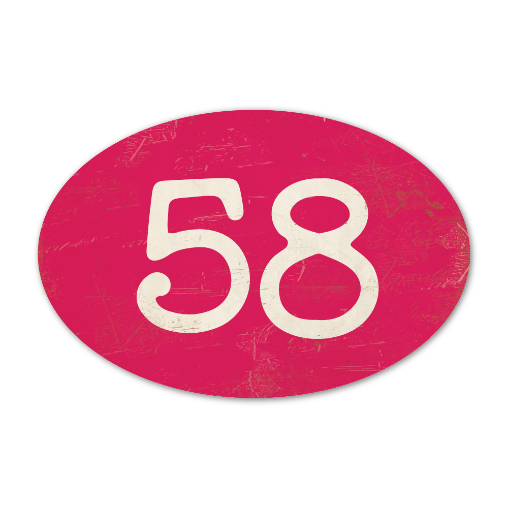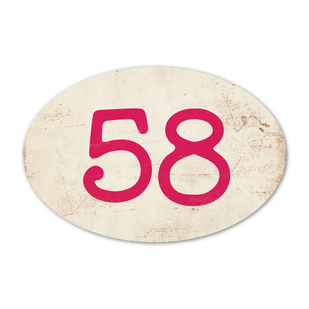 Mooi ovaal (knal)roze “vintage” huisnummerbordje. Stoer en origineel huisnummerbordje voor bij de voordeur van jouw huis. Maar natuurlijk ook leuk en origineel als cadeau voor iemand die net verhuisd is (housewarming). Het huisnummerbordje staat natuurlijk ook tof als cijferbord in je interieur.