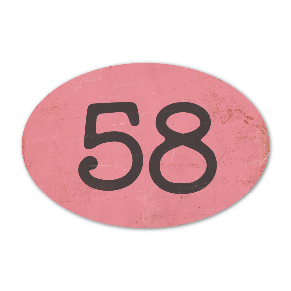 Mooi ovaal roze zwart “vintage” huisnummerbordje. Stoer en origineel huisnummerbordje voor bij de voordeur van jouw huis. Maar natuurlijk ook leuk en origineel als cadeau voor iemand die net verhuisd is (housewarming). Het huisnummerbordje staat natuurlijk ook tof als cijferbord in je interieur.