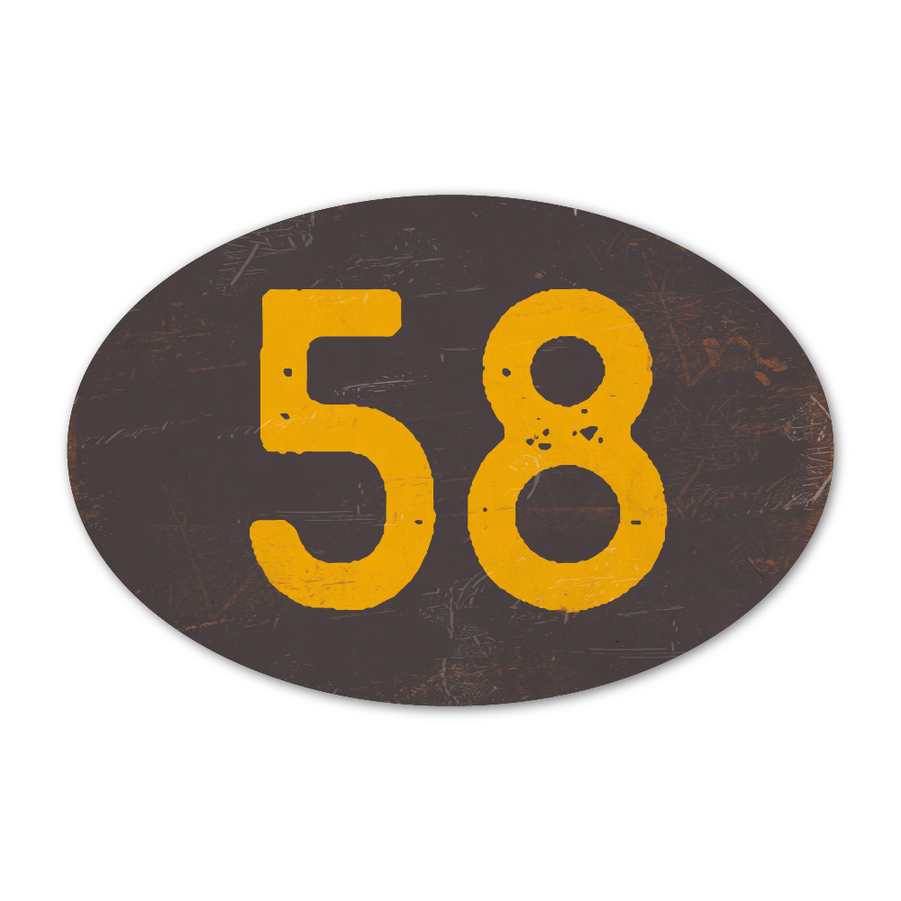 Mooi ovaal geel zwart “vintage” huisnummerbordje. Stoer en origineel huisnummerbordje voor bij de voordeur van jouw huis. Maar natuurlijk ook leuk en origineel als cadeau voor iemand die net verhuisd is (housewarming). Het huisnummerbordje staat natuurlijk ook tof als cijferbord in je interieur.