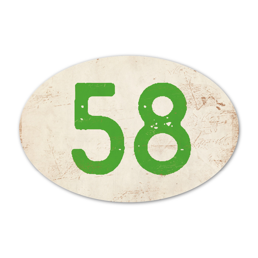 Mooi ovaal groen “vintage” huisnummerbordje. Stoer en origineel huisnummerbordje voor bij de voordeur van jouw huis. Maar natuurlijk ook leuk en origineel als cadeau voor iemand die net verhuisd is (housewarming). Het huisnummerbordje staat natuurlijk ook tof als cijferbord in je interieur.