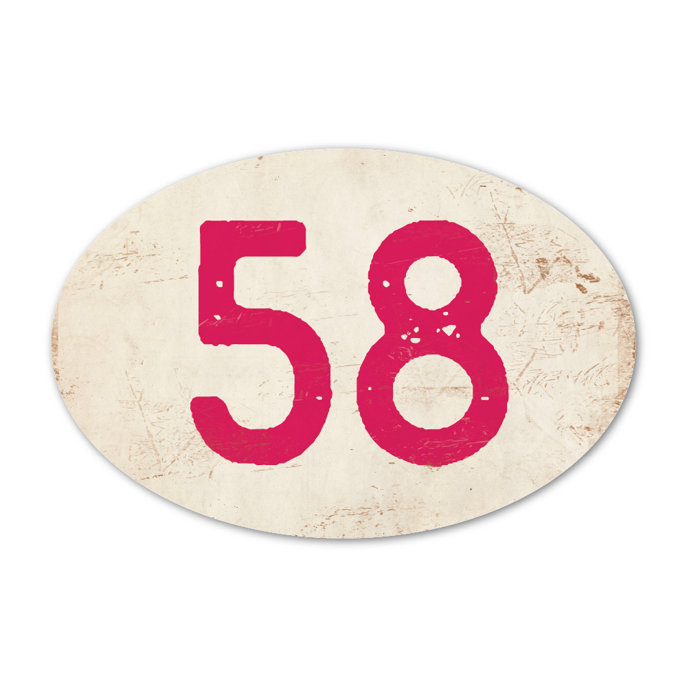 Mooi ovaal (knal)roze “vintage” huisnummerbordje. Stoer en origineel huisnummerbordje voor bij de voordeur van jouw huis. Maar natuurlijk ook leuk en origineel als cadeau voor iemand die net verhuisd is (housewarming). Het huisnummerbordje staat natuurlijk ook tof als cijferbord in je interieur.