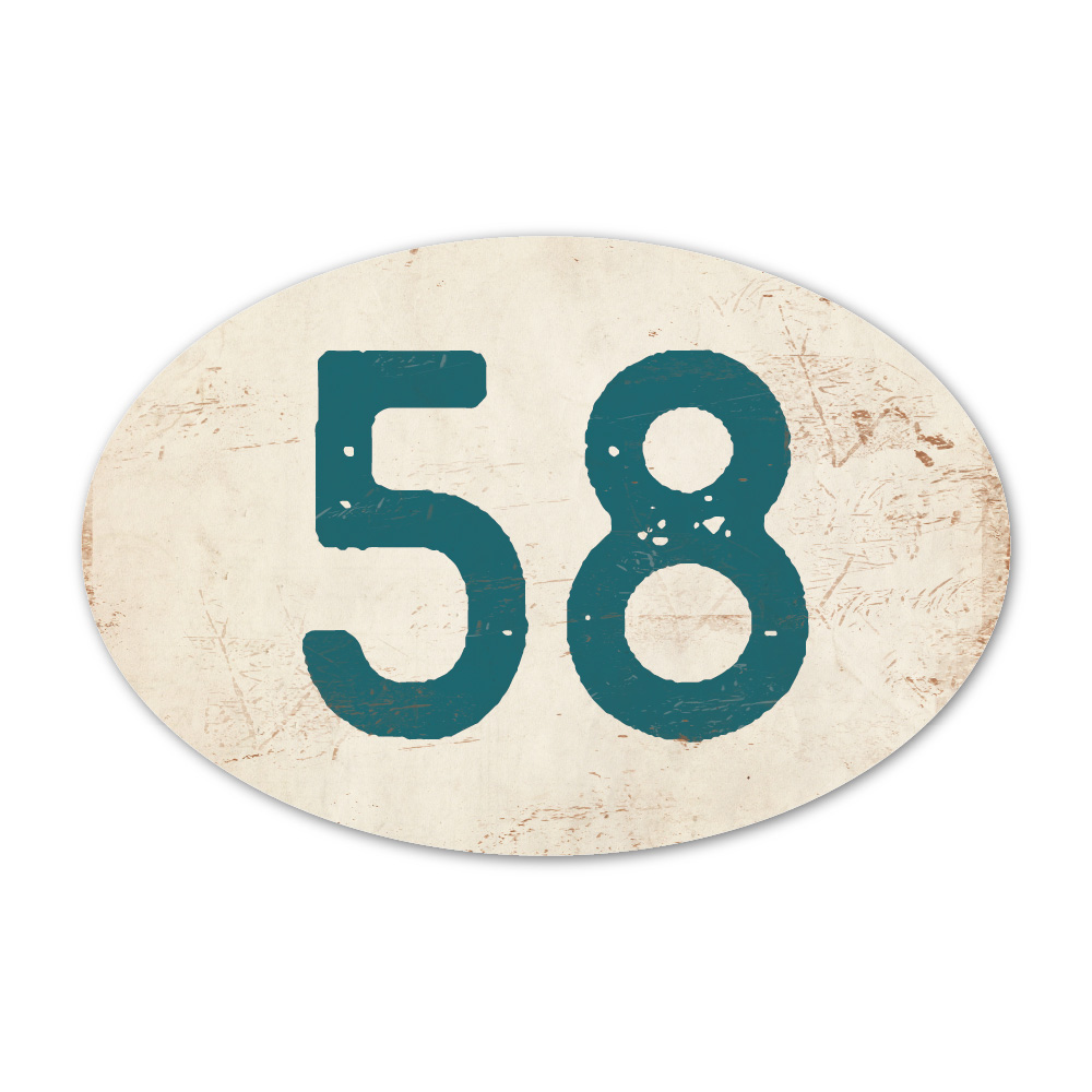 Mooi ovaal petrol blauw wit “vintage” huisnummerbordje. Stoer en origineel huisnummerbordje voor bij de voordeur van jouw huis. Maar natuurlijk ook leuk en origineel als cadeau voor iemand die net verhuisd is (housewarming). Het huisnummerbordje staat natuurlijk ook tof als cijferbord in je interieur.