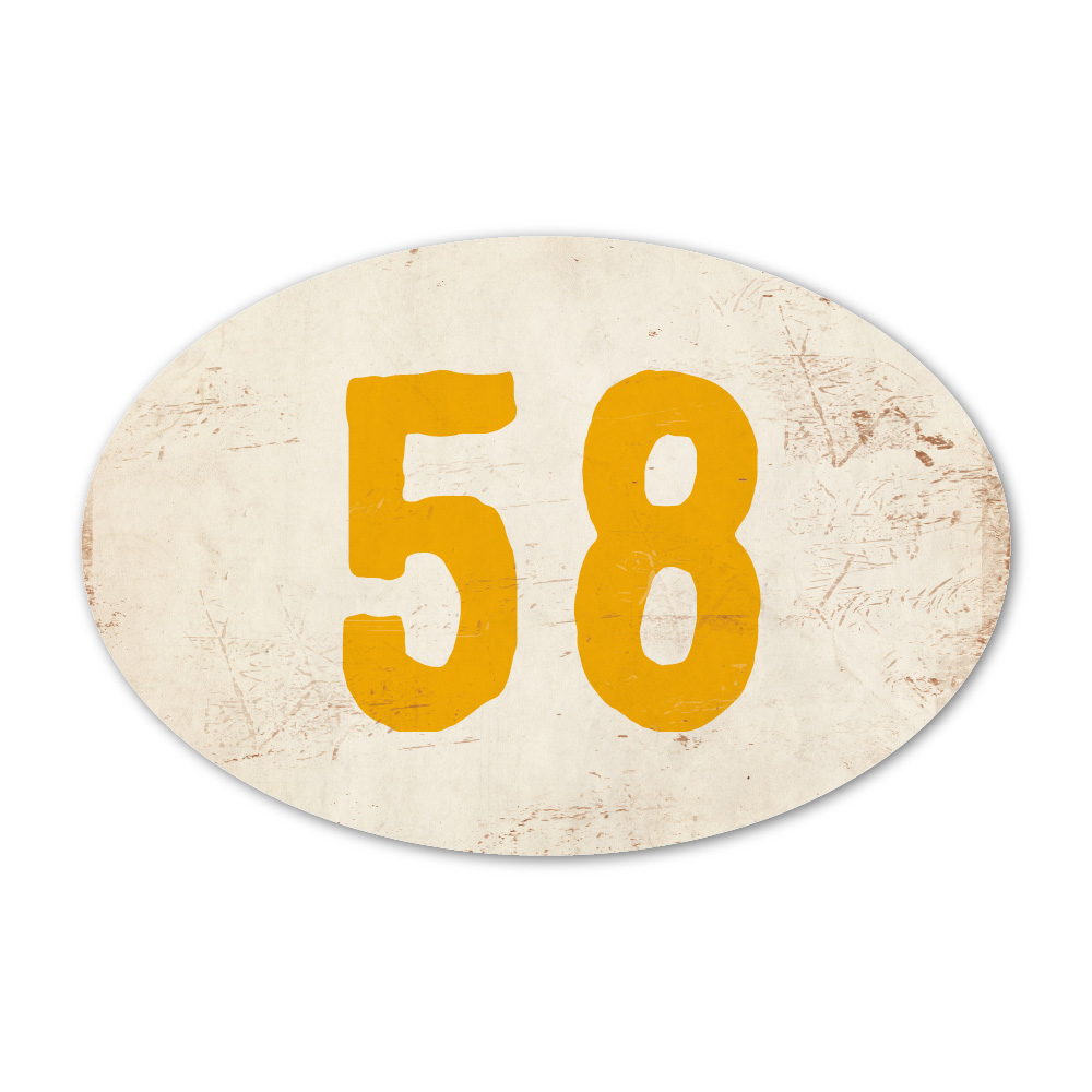 Mooi ovaal geel wit “vintage” huisnummerbordje. Stoer en origineel huisnummerbordje voor bij de voordeur van jouw huis. Maar natuurlijk ook leuk en origineel als cadeau voor iemand die net verhuisd is (housewarming). Het huisnummerbordje staat natuurlijk ook tof als cijferbord in je interieur.