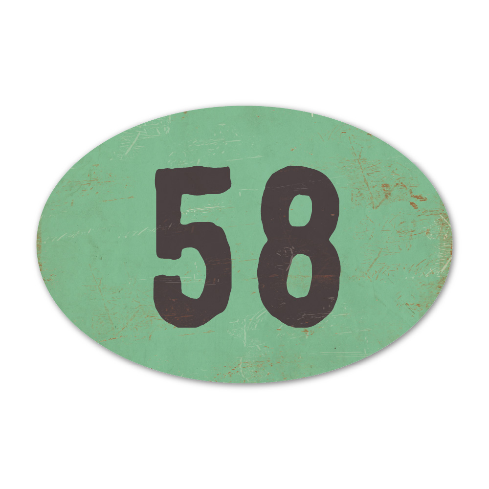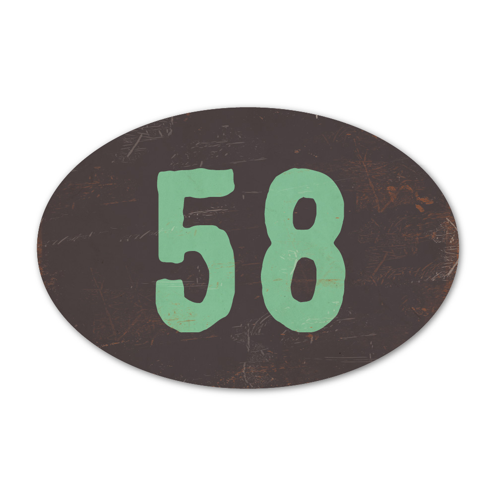 Mooi ovaal mint zwart “vintage” huisnummerbordje. Stoer en origineel huisnummerbordje voor bij de voordeur van jouw huis. Maar natuurlijk ook leuk en origineel als cadeau voor iemand die net verhuisd is (housewarming). Het huisnummerbordje staat natuurlijk ook tof als cijferbord in je interieur.