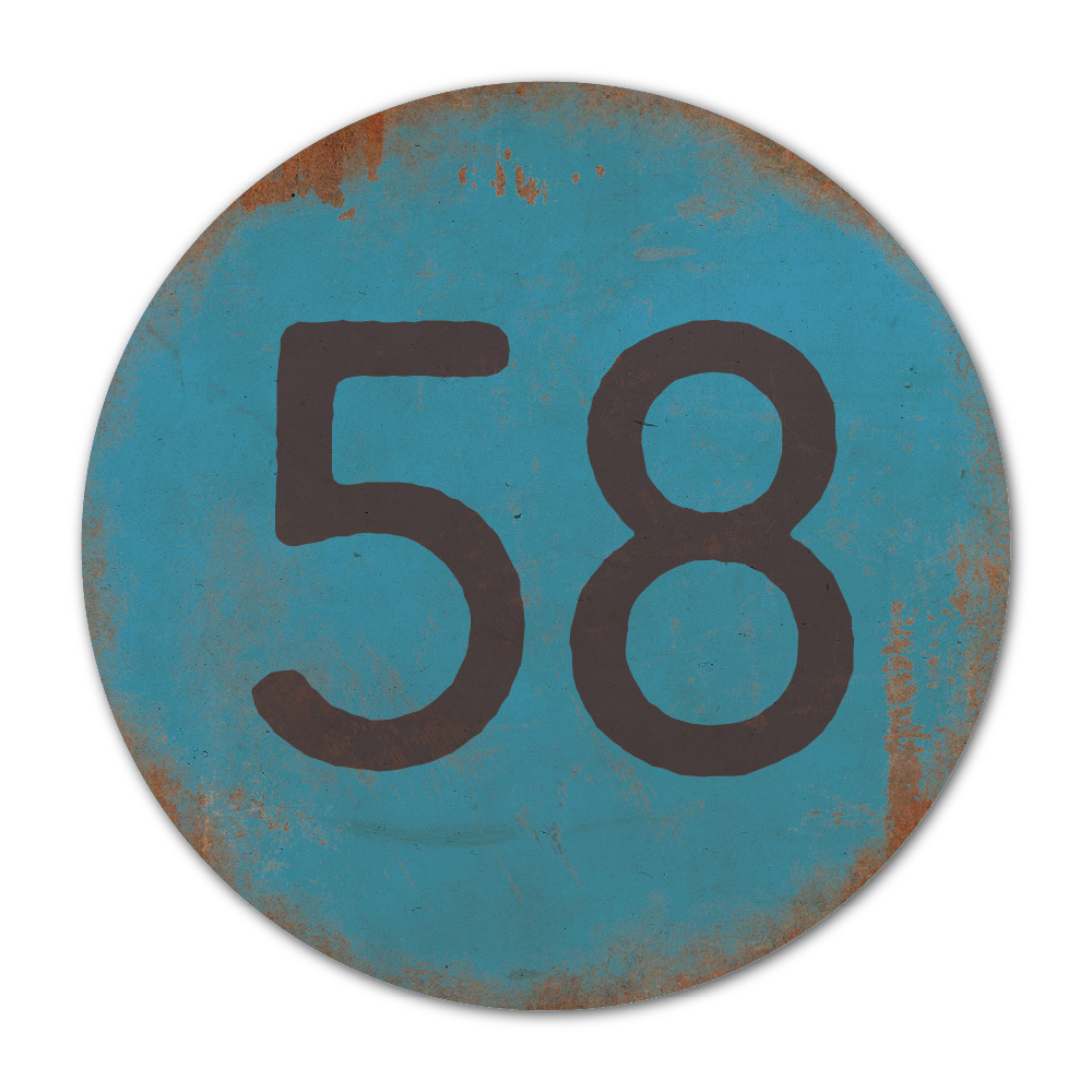 Mooi rond blauw zwart”vintage” huisnummerbordje. Stoer en origineel huisnummerbordje voor bij de voordeur van jouw huis. Maar natuurlijk ook leuk en origineel als cadeau voor iemand die net verhuisd is (housewarming). Het huisnummerbordje staat natuurlijk ook tof als cijferbord in je interieur.