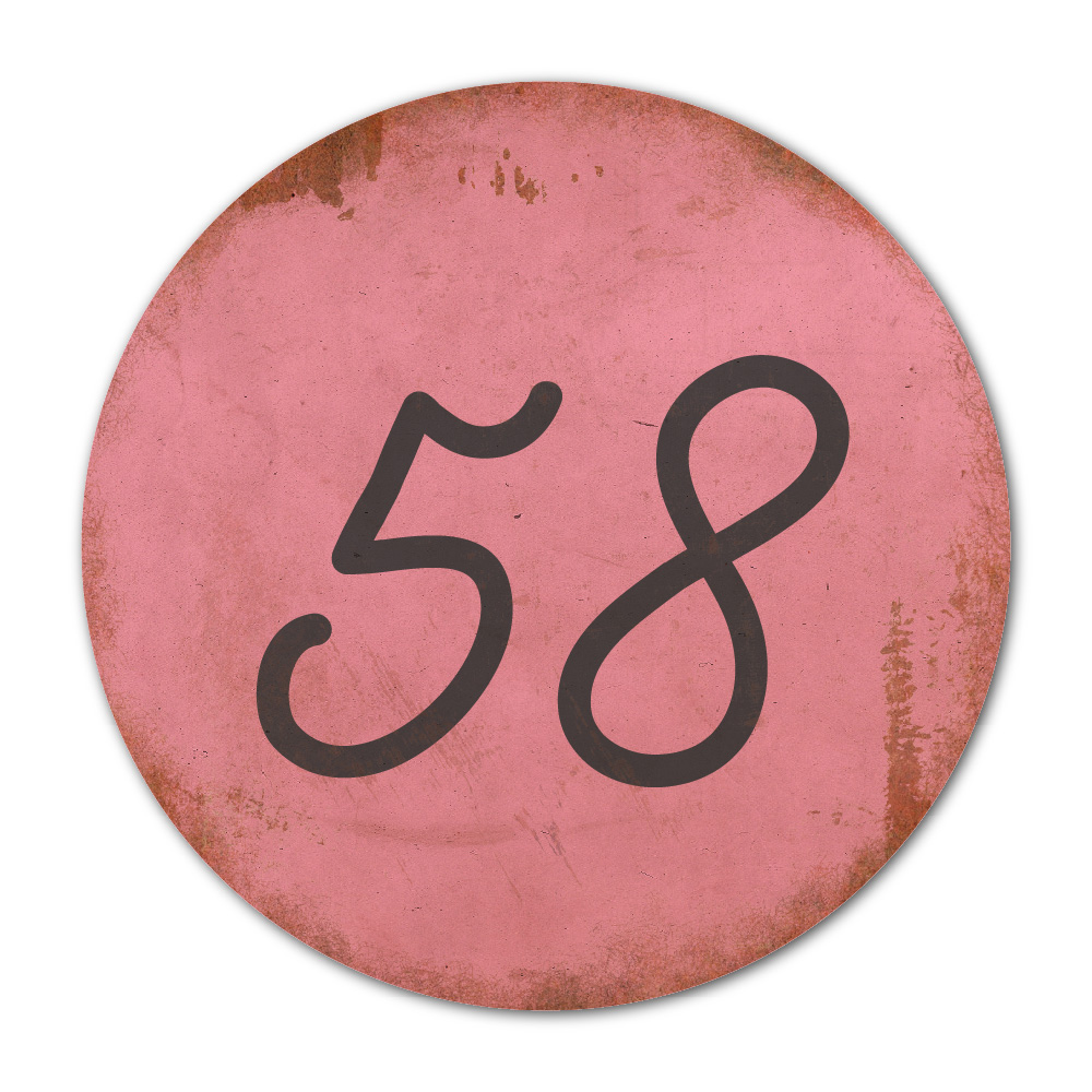 Mooi rond roze zwart “vintage” huisnummerbordje. Stoer en origineel huisnummerbordje voor bij de voordeur van jouw huis. Maar natuurlijk ook leuk en origineel als cadeau voor iemand die net verhuisd is (housewarming). Het huisnummerbordje staat natuurlijk ook tof als cijferbord in je interieur.