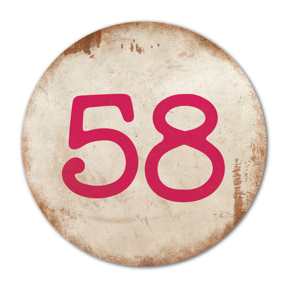Mooi rond (knal)roze “vintage” huisnummerbordje. Stoer en origineel huisnummerbordje voor bij de voordeur van jouw huis. Maar natuurlijk ook leuk en origineel als cadeau voor iemand die net verhuisd is (housewarming). Het huisnummerbordje staat natuurlijk ook tof als cijferbord in je interieur.