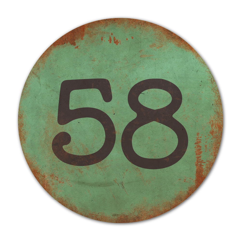 Mooi rond mint zwart “vintage” huisnummerbordje. Stoer en origineel huisnummerbordje voor bij de voordeur van jouw huis. Maar natuurlijk ook leuk en origineel als cadeau voor iemand die net verhuisd is (housewarming). Het huisnummerbordje staat natuurlijk ook tof als cijferbord in je interieur.