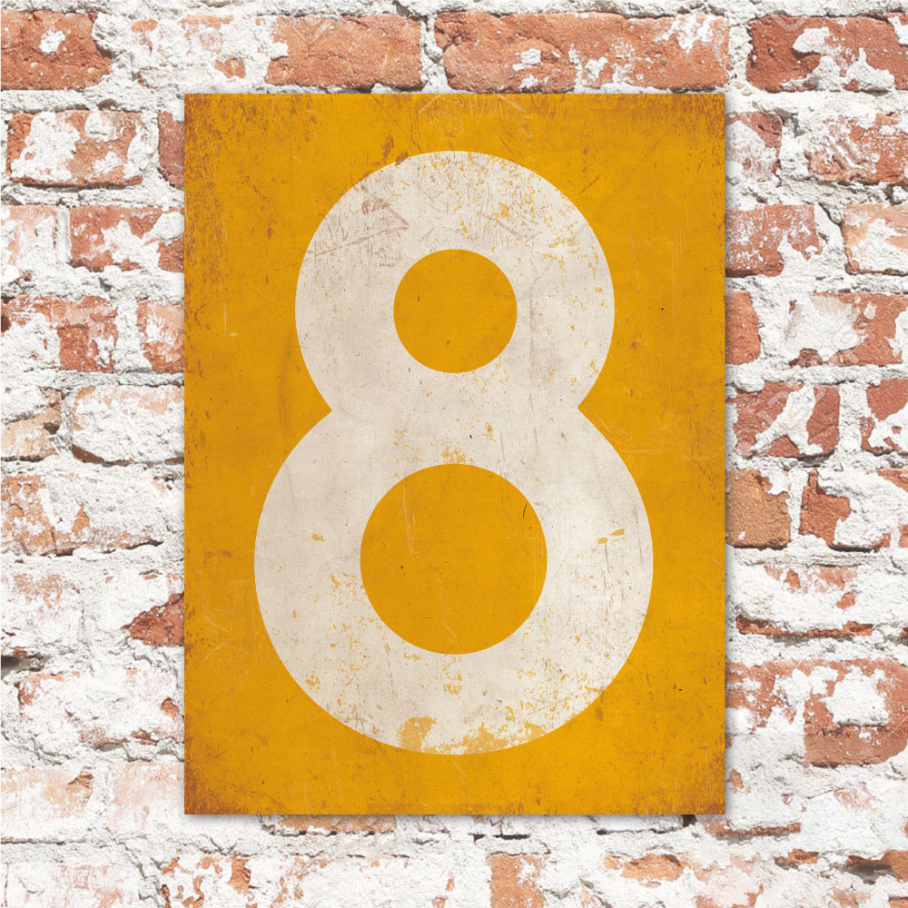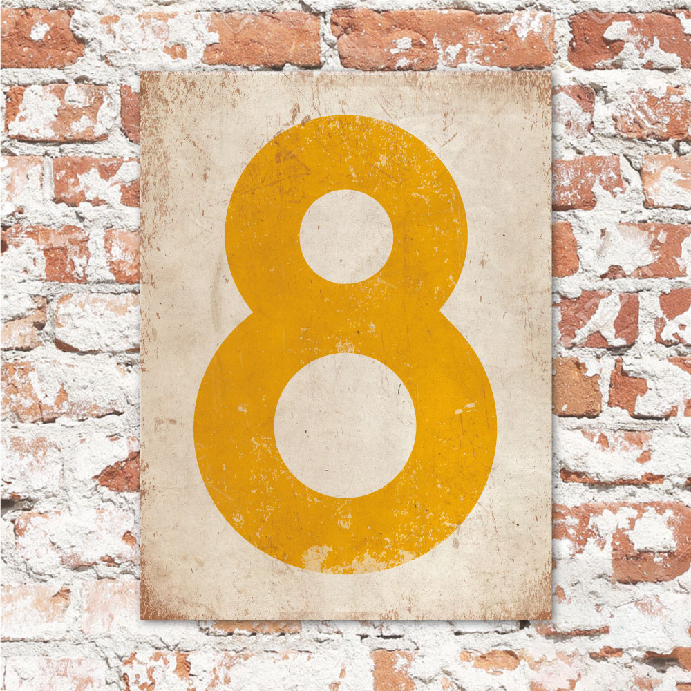 Mooi geel en wit “vintage” huisnummerbordje. Stoer en origineel huisnummerbordje voor bij de voordeur van jouw huis. Maar natuurlijk ook leuk en origineel als cadeau voor iemand die net verhuisd is (housewarming). Het huisnummerbordje staat natuurlijk ook tof als cijferbord in je interieur.