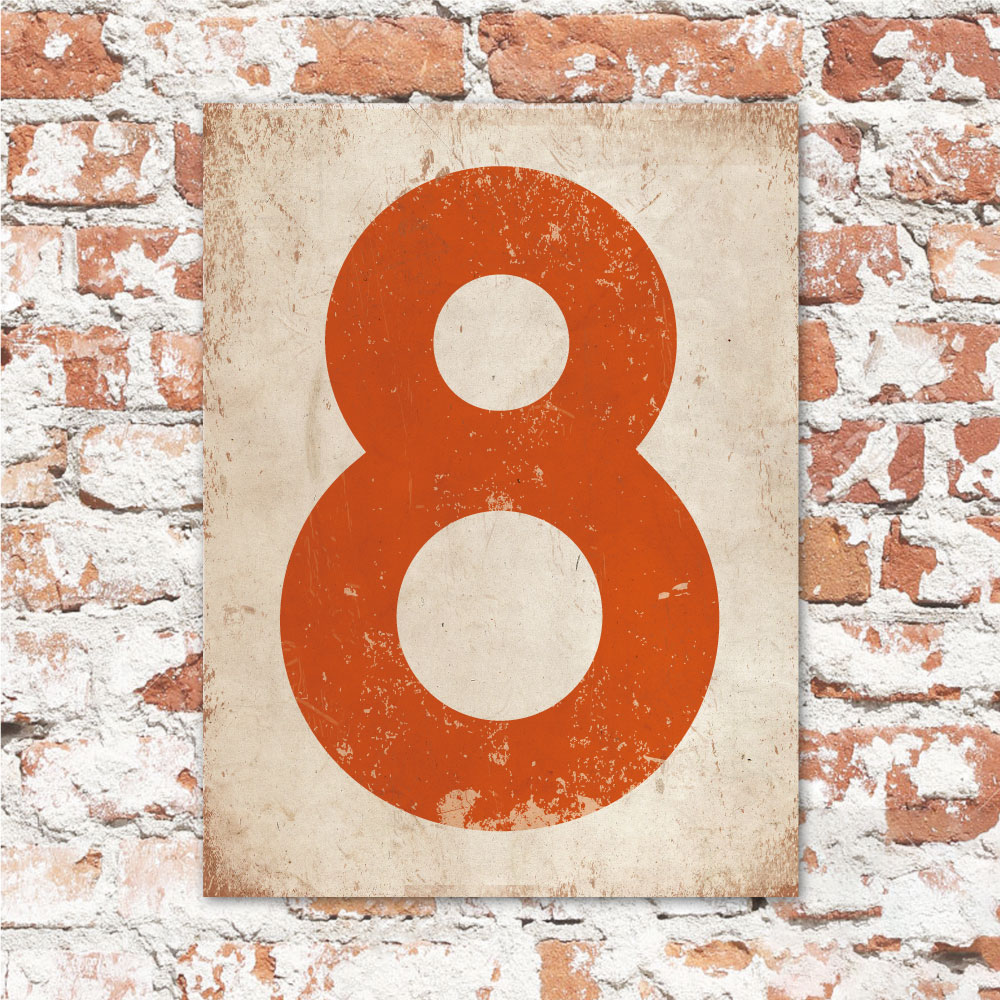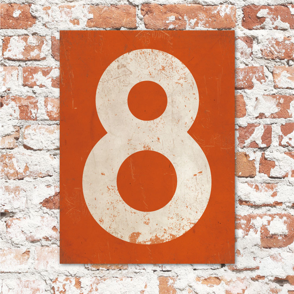 Mooi oranje en wit “vintage” huisnummerbordje. Stoer en origineel huisnummerbordje voor bij de voordeur van jouw huis. Maar natuurlijk ook leuk en origineel als cadeau voor iemand die net verhuisd is (housewarming). Het huisnummerbordje staat natuurlijk ook tof als cijferbord in je interieur.