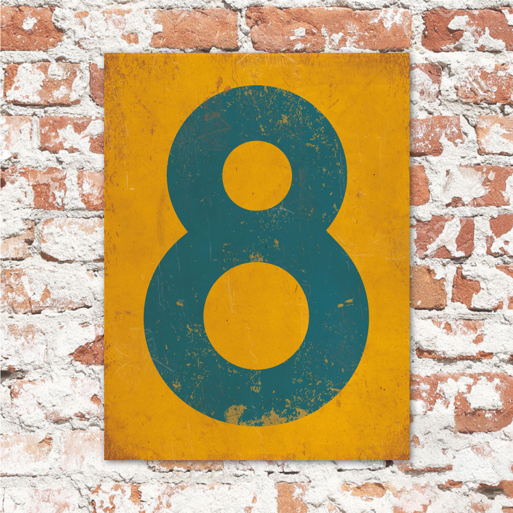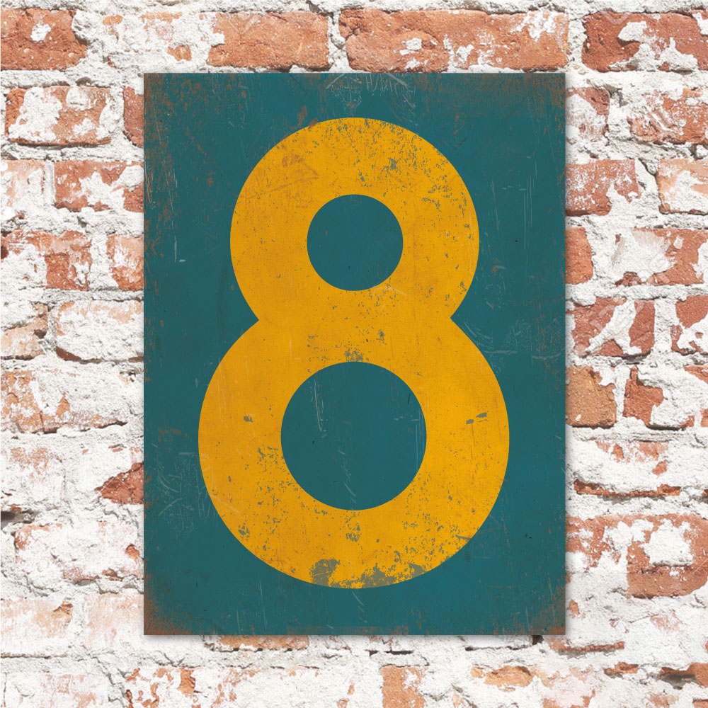 Mooi petrol blauw en geel “vintage” huisnummerbordje. Stoer en origineel huisnummerbordje voor bij de voordeur van jouw huis. Maar natuurlijk ook leuk en origineel als cadeau voor iemand die net verhuisd is (housewarming). Het huisnummerbordje staat natuurlijk ook tof als cijferbord in je interieur.