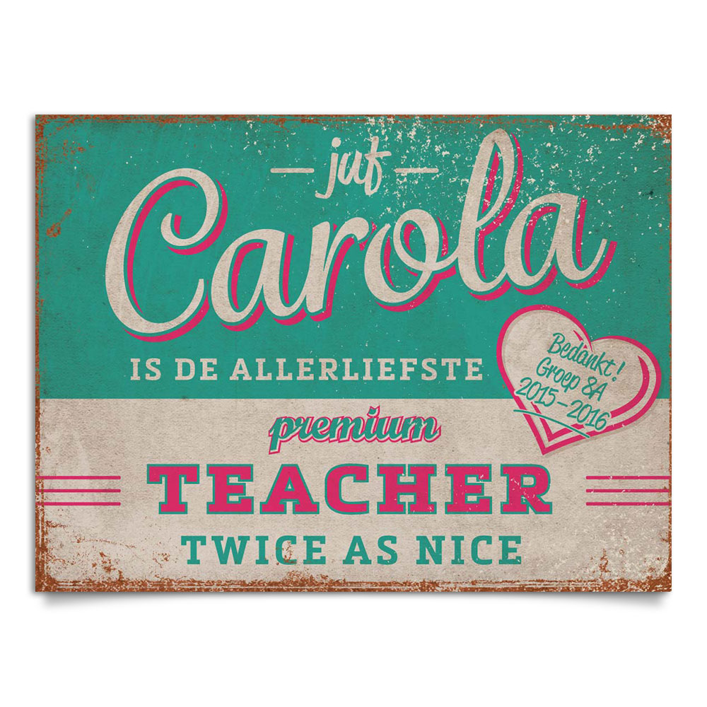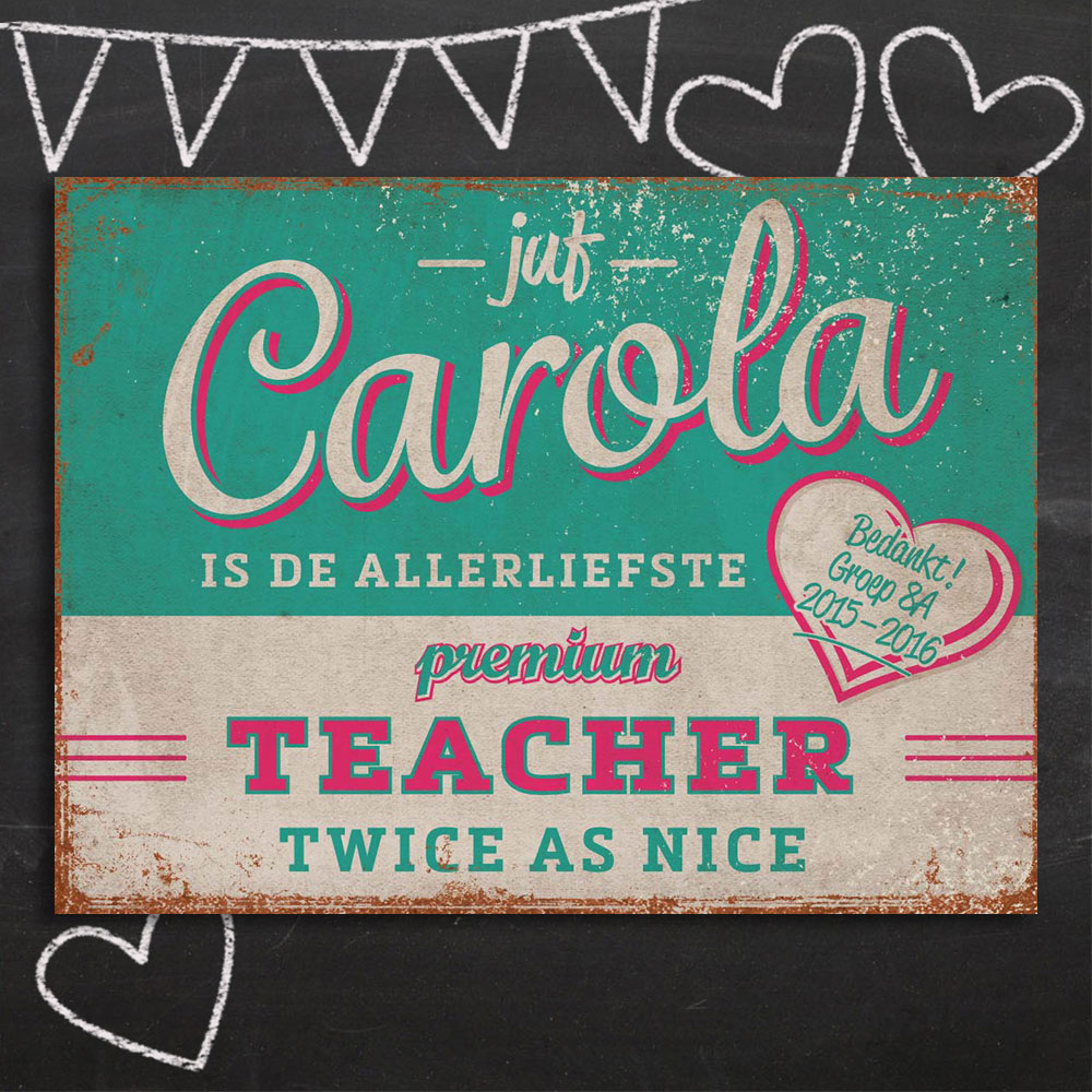 Het einde van het schooljaar komt er weer aan! Daarmee komt er afscheid nemen van de juf of meester. Verras de juf of leraar met een origineel en uniek naambord met leuk teksten. Het is ook mogelijk om eigen teksten in plaats van de standaard teksten op het naambord te zetten.
