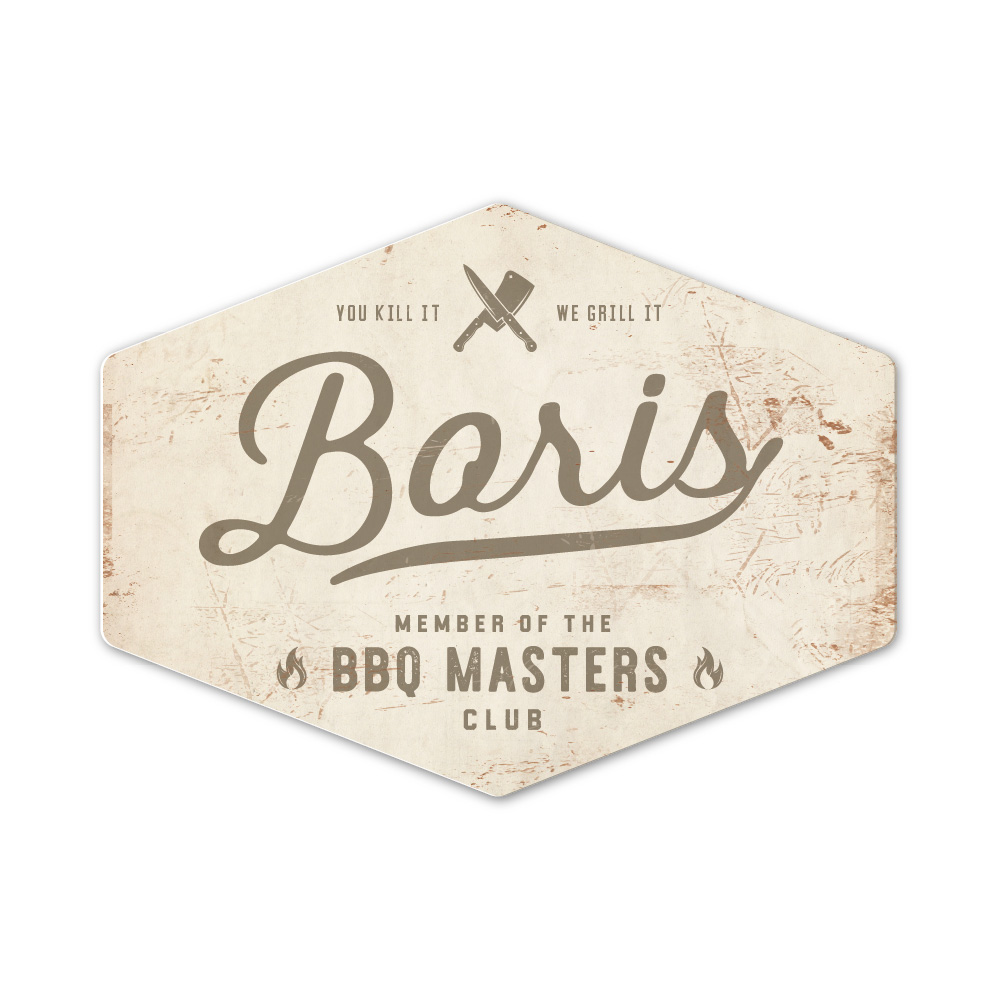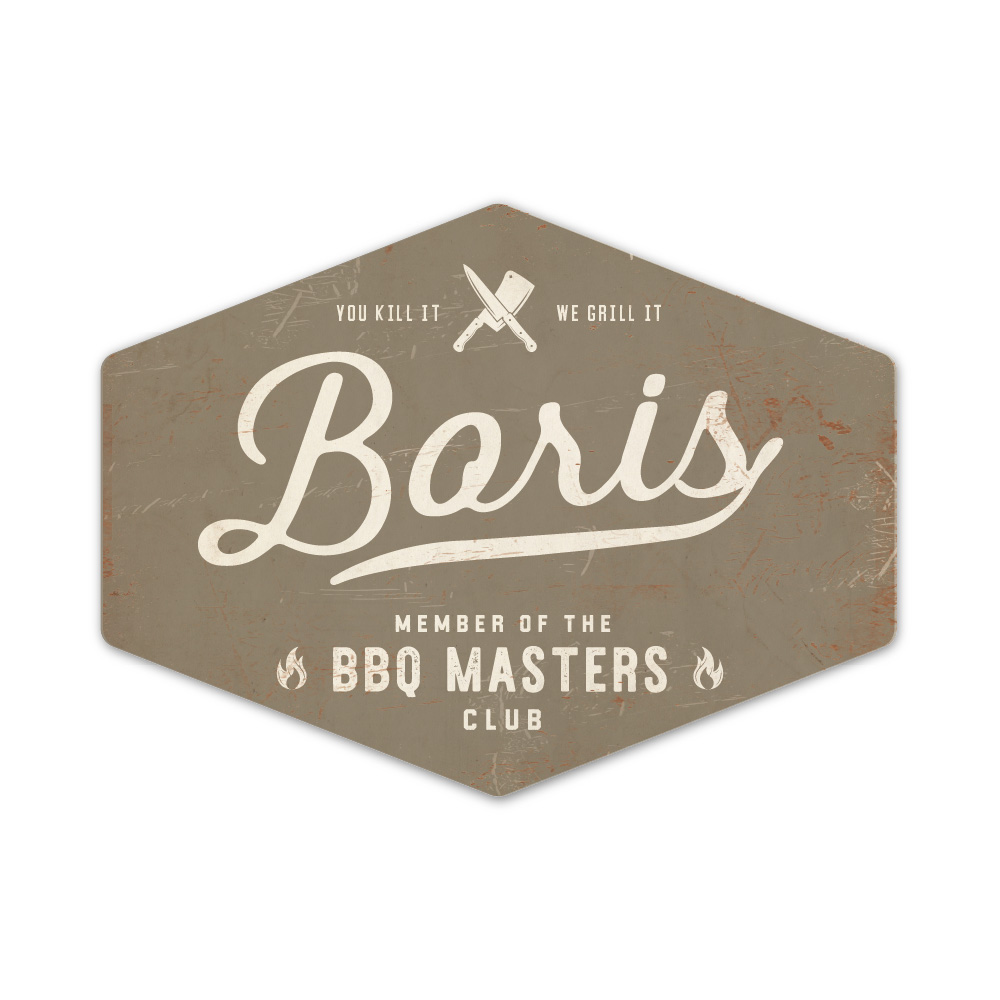 Mooi grijs wit “vintage” ruitvormig naambordje met voornaam. Geïnspireerd door oude borden. Stoer en origineel naambordje voor bij de bbq van jouw vader/man. Maar natuurlijk ook leuk en origineel als cadeau voor iemand die gek is van bbq’en of bijvoorbeeld de (nieuwe) mancave.