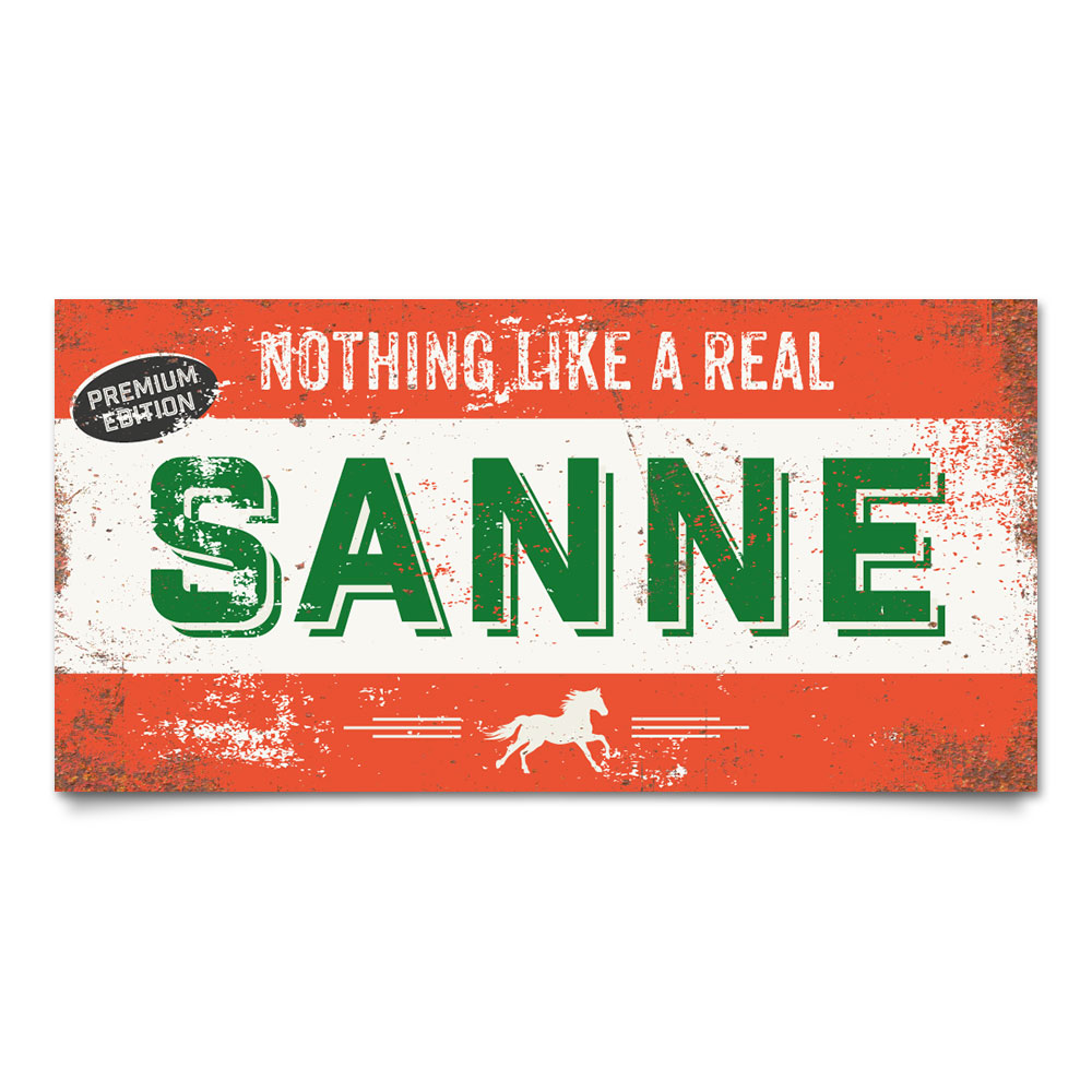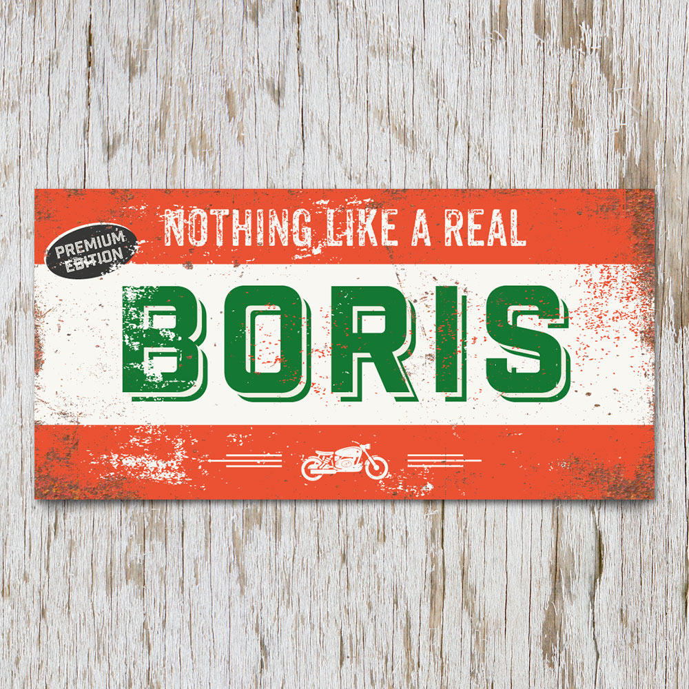 Mooie rood, groen en wit “vintage” naambord (Engelstalig reclamebord) met de naam van uw kind. Onder de naam kun je kiezen tussen een motor en een paard. Een ander item is op verzoek mogelijk. Het naambord wordt geplakt op dibond (2 lagen aluminium met zwarte kern). Dit naambord wordt geleverd met plakgum zodat je het eenvoudig aan de deur kun bevestigen. Erg mooi en stoer op deur van de kinderkamer.