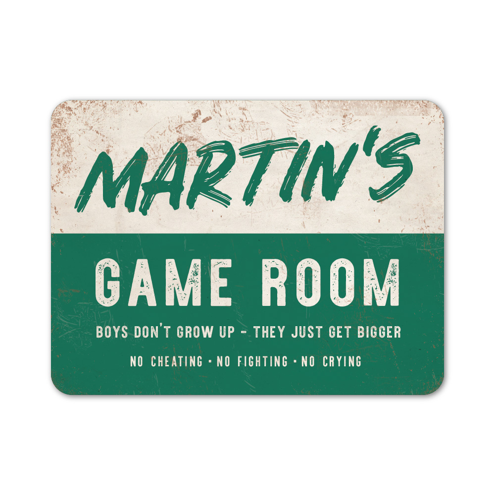 Mooi donker groen wit “vintage” rechthoekig naambordje met jouw voornaam. Geïnspireerd door oude borden. Stoer en origineel naambordje voor bij de kamerdeur van jouw man/vader/zoon. Maar natuurlijk ook leuk en origineel als cadeau voor iemand die gek is van gamen of bijvoorbeeld de (nieuwe) mancave.