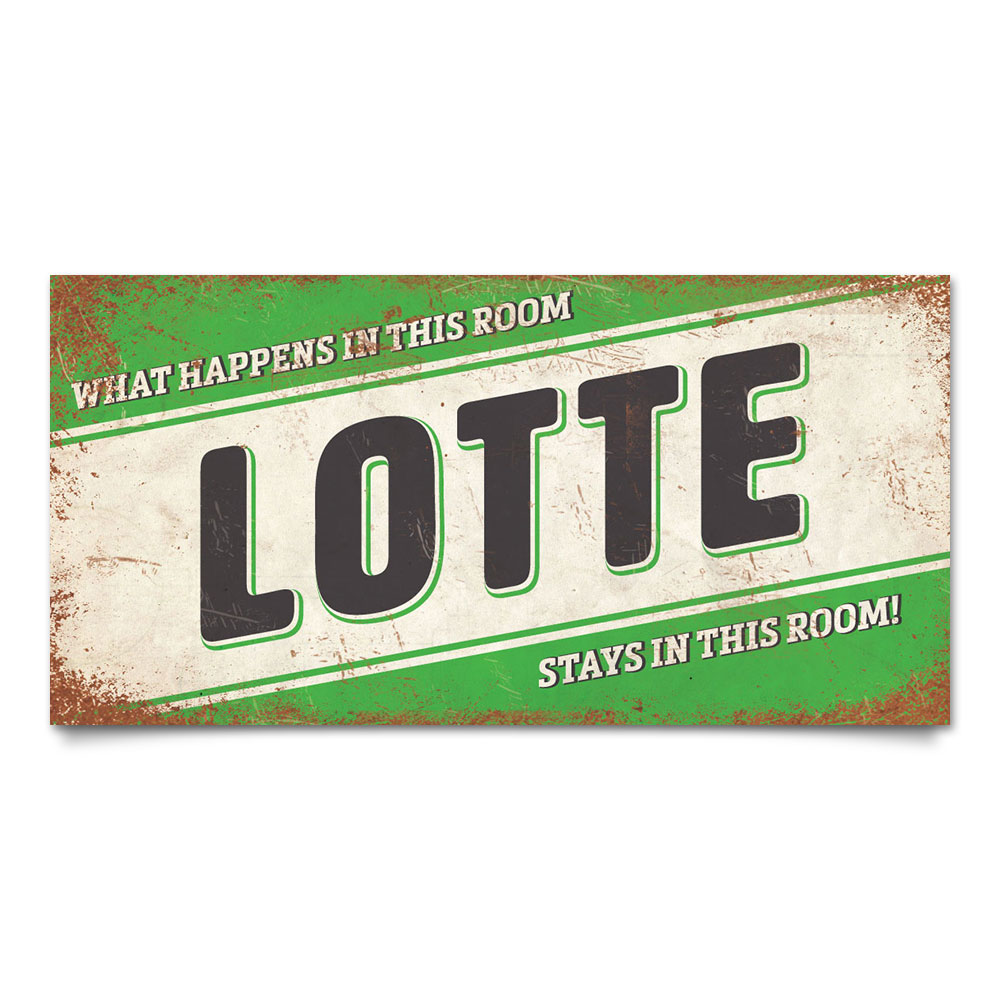 Mooie groen, zwart en wit “vintage” naambord (Engelstalig reclamebord) met de naam van uw kind. Het naambord wordt geplakt op dibond (2 lagen aluminium met zwarte kern). Dit naambord wordt geleverd met plakgum zodat je het eenvoudig aan de deur kun bevestigen. Erg mooi en stoer op deur van de kinderkamer.