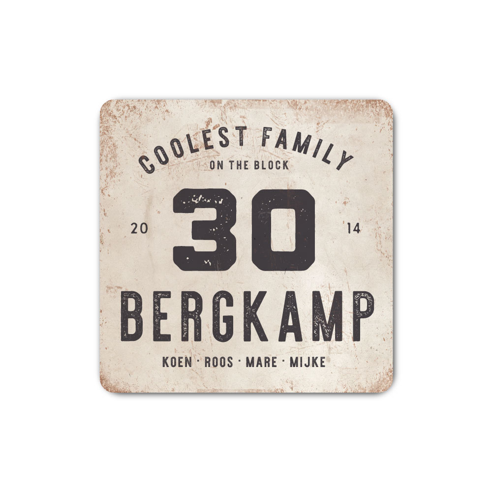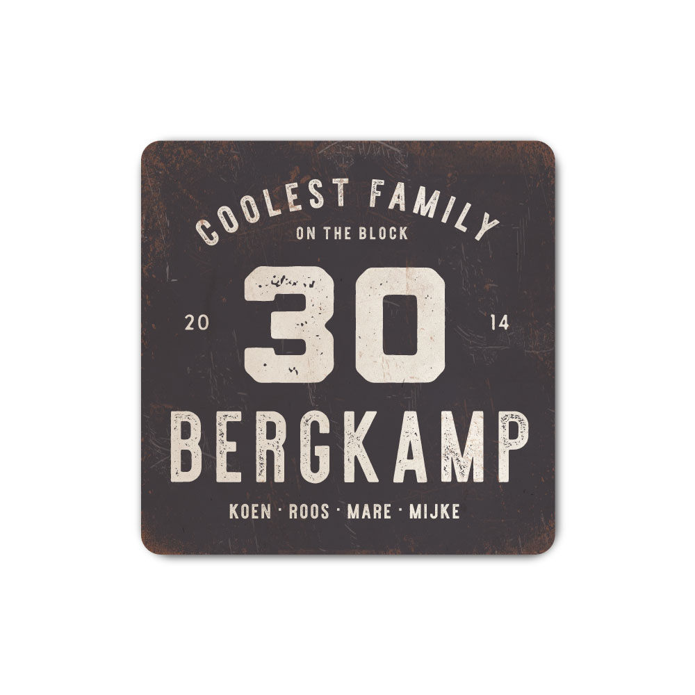 Mooi antraciet en wit “vintage” industrieel vierkant naambordje met jouw achternaam, voornamen, jaartal en huisnummer. Geïnspireerd door oude borden. Stoer en origineel naambordje voor bij de voordeur van jouw huis. Maar natuurlijk ook leuk en origineel als cadeau voor iemand die net verhuisd is (housewarming).