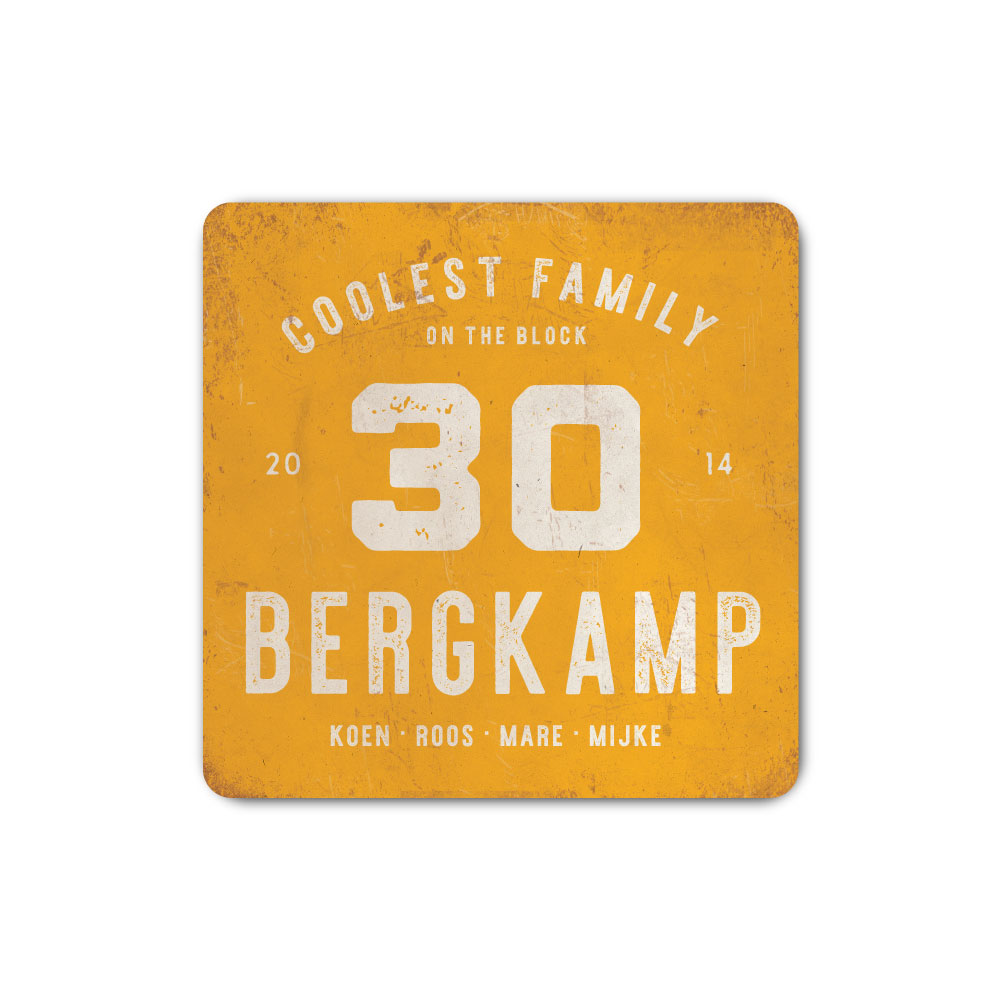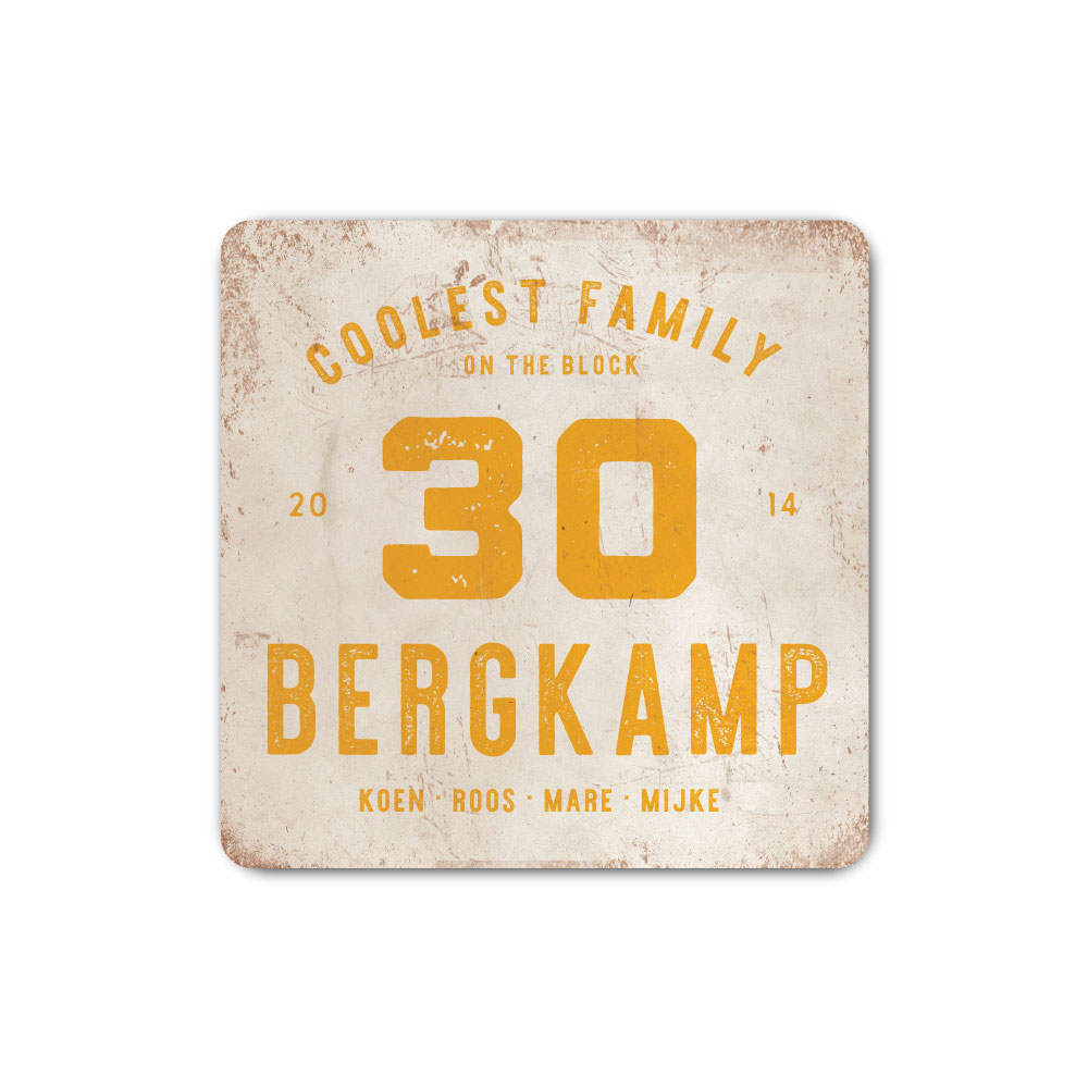 Mooi geel en wit “vintage” industrieel vierkant naambordje met jouw achternaam, voornamen, jaartal en huisnummer. Geïnspireerd door oude borden. Stoer en origineel naambordje voor bij de voordeur van jouw huis. Maar natuurlijk ook leuk en origineel als cadeau voor iemand die net verhuisd is (housewarming).