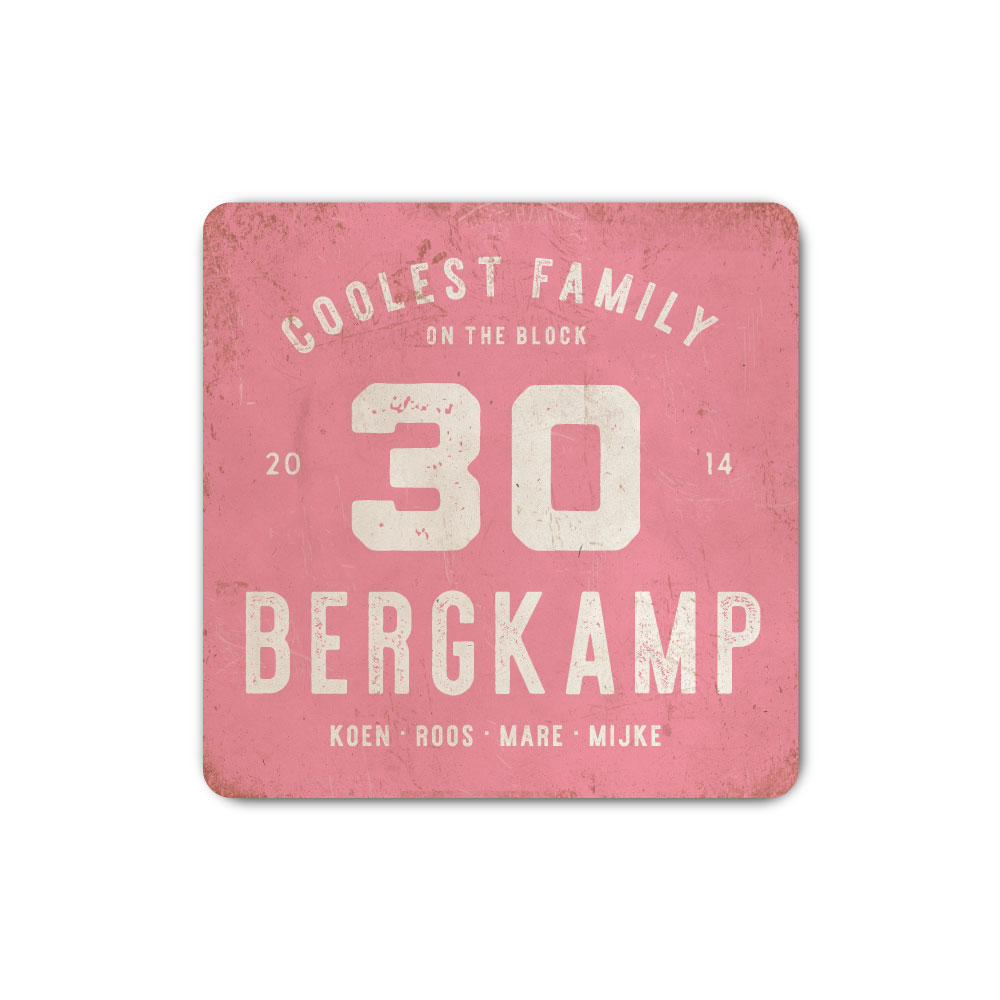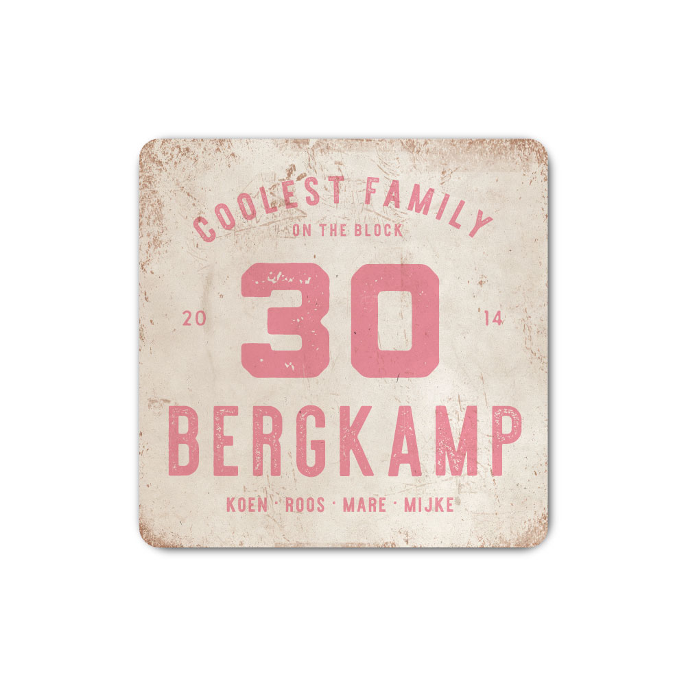 Mooi roze en wit “vintage” industrieel vierkant naambordje met jouw achternaam, voornamen, jaartal en huisnummer. Geïnspireerd door oude borden. Stoer en origineel naambordje voor bij de voordeur van jouw huis. Maar natuurlijk ook leuk en origineel als cadeau voor iemand die net verhuisd is (housewarming).