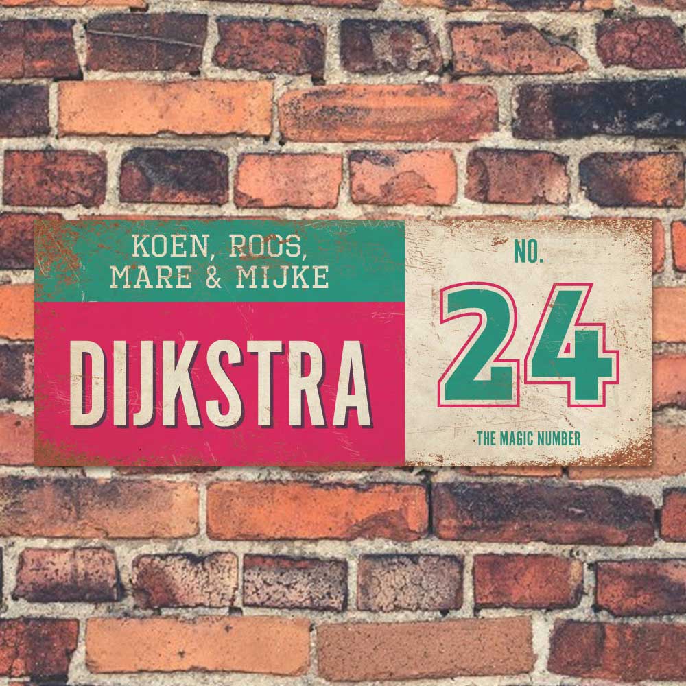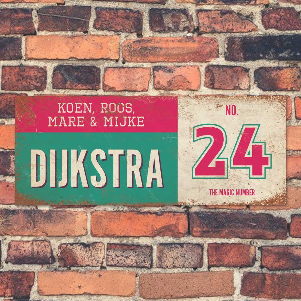 Mooi mint, roze en wit “vintage” langwerpig naambordje met uw achternaam, voornamen en huisnummer. Stoer en origineel naambordje voor bij de voordeur van jouw huis. Maar natuurlijk ook leuk en origineel als cadeau voor iemand die net verhuisd is (housewarming).