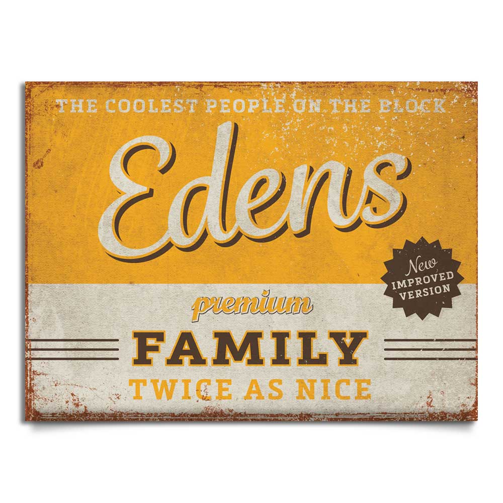 Mooie geel met bruin “vintage” naambordje (Engelstalig reclamebord) met jouw achternaam, voornamen, huisnummer en leuke teksten. Een leuk en origineel cadeau voor iemand die net verhuisd is. maar natuurlijk ook voor uw eigen huis. Hieronder kun je kiezen tussen verschillende varianten van deze kleurencombinatie. De foto van de variant wordt na de keuze automatisch vertoond als voorbeeld. Wil je alleen de voornamen op het bordje, dan mag je bij de achternaam nvt invullen. Na het plaatsen van de bestelling, ontvang je van mij een opzet.