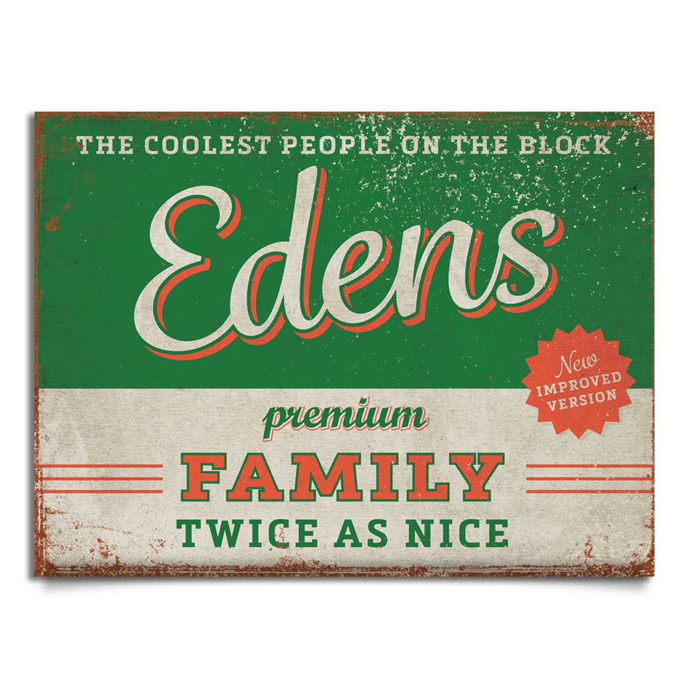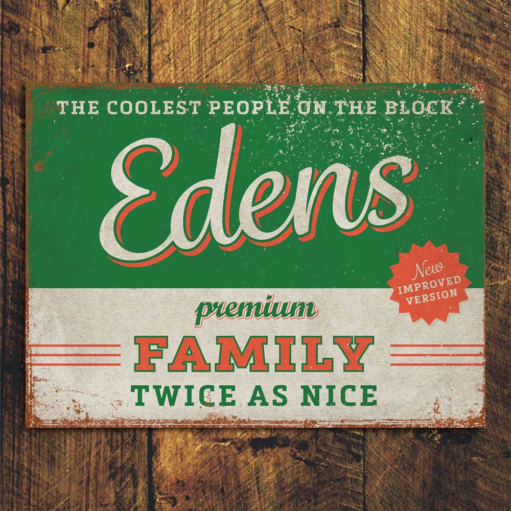 Mooie groen met rood “vintage” naambordje (Engelstalig reclamebord) met jouw achternaam, voornamen, huisnummer en leuke teksten. Een leuk en origineel cadeau voor iemand die net verhuisd is. maar natuurlijk ook voor uw eigen huis. Hieronder kun je kiezen tussen verschillende varianten van deze kleurencombinatie. De foto van de variant wordt na de keuze automatisch vertoond als voorbeeld. Wil je alleen de voornamen op het bordje, dan mag je bij de achternaam nvt invullen. Na het plaatsen van de bestelling, ontvang je van mij een opzet.