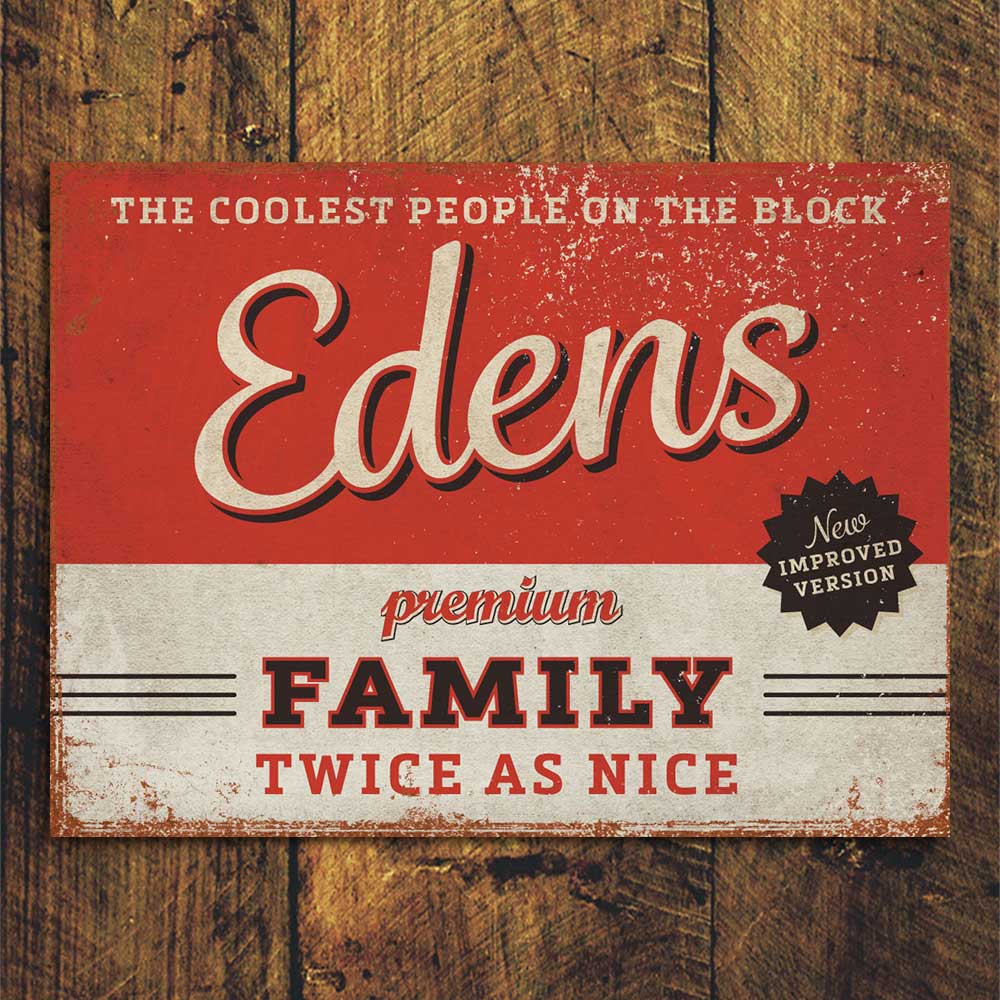 Mooie rood met zwart “vintage” naambordje (Engelstalig reclamebord) met jouw achternaam, voornamen, huisnummer en leuke teksten. Een leuk en origineel cadeau voor iemand die net verhuisd is. maar natuurlijk ook voor uw eigen huis. Hieronder kun je kiezen tussen verschillende varianten van deze kleurencombinatie. De foto van de variant wordt na de keuze automatisch vertoond als voorbeeld. Wil je alleen de voornamen op het bordje, dan mag je bij de achternaam nvt invullen. Na het plaatsen van de bestelling, ontvang je van mij een opzet.