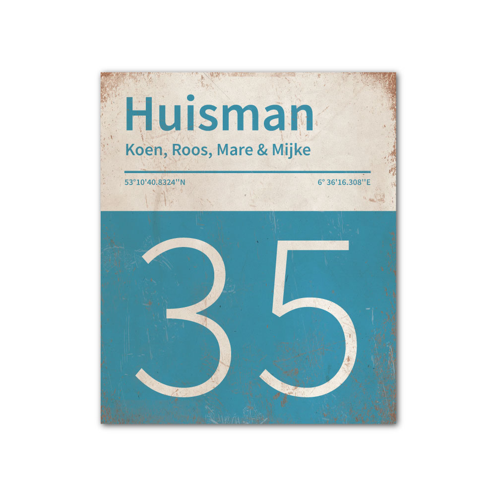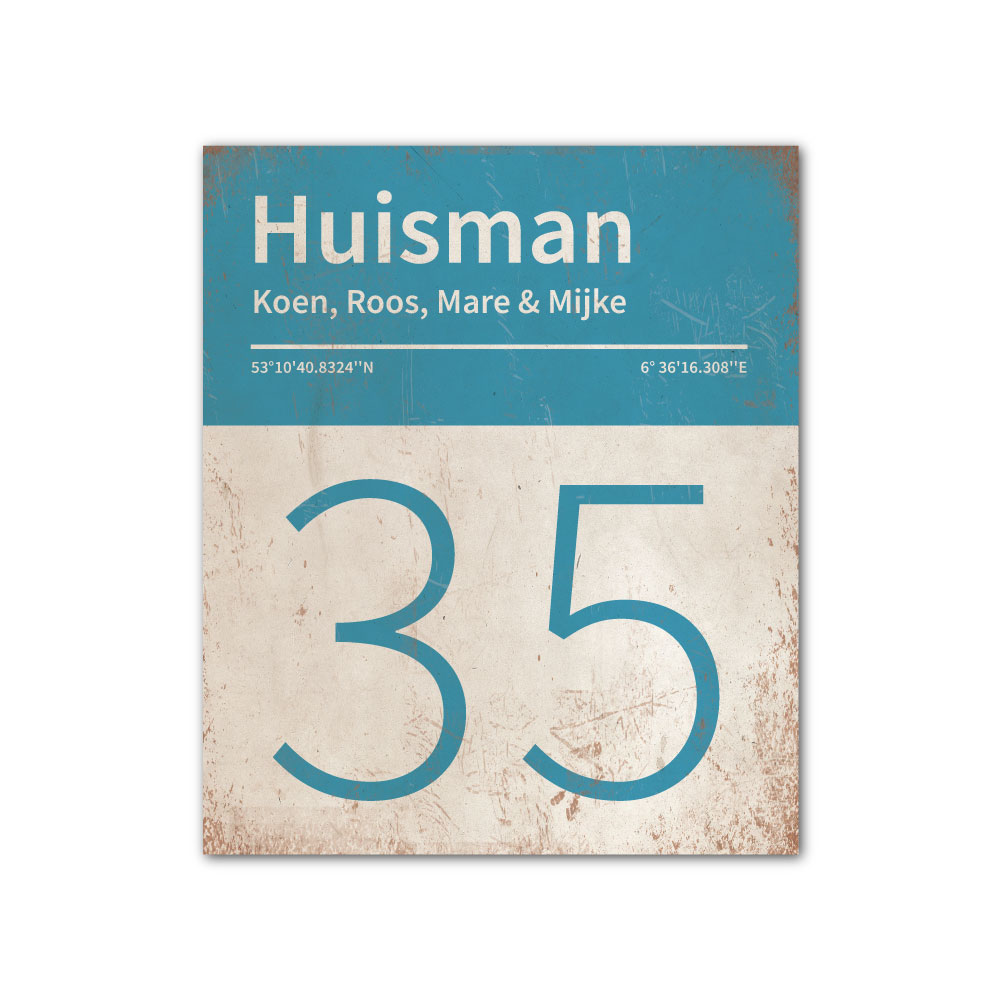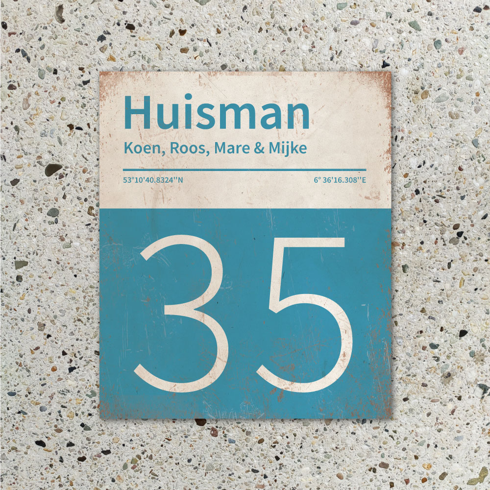 Mooi knalroze en wit “vintage” naambordje met jouw achternaam, voornamen, huisnummer en coördinaten. Gebaseerd op boekcovers uit de jaren zeventig en pantone kleurstalen. Strak en origineel naambordje voor bij de voordeur van jouw huis. Maar natuurlijk ook leuk en origineel als cadeau voor iemand die net verhuisd is (housewarming), voor de (nieuwe) mancave, tuinhuis, paardenstal, hondenhok etc.