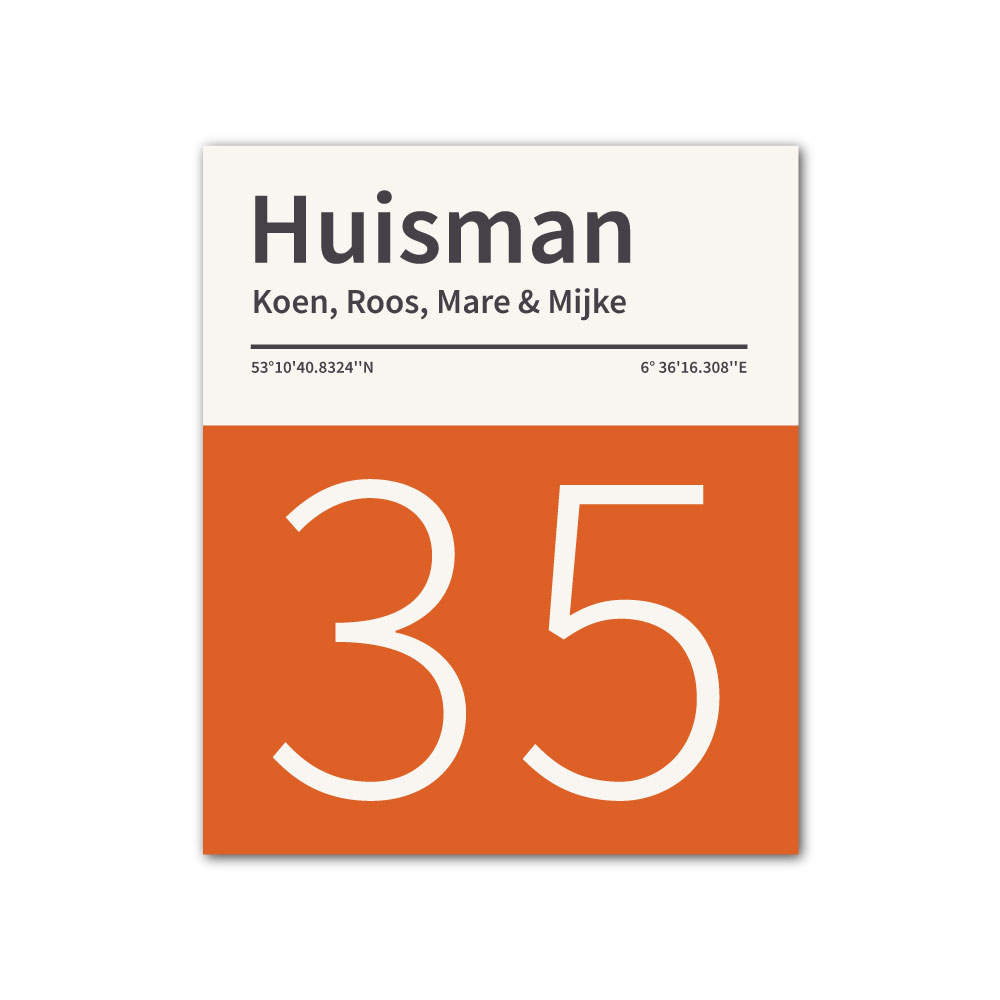 Naambord voordeur Huisman nr onder – Oranje Wit