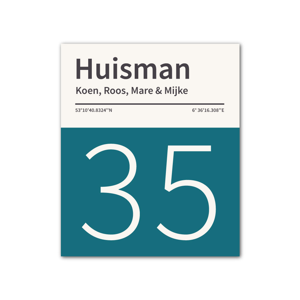 Naambord voordeur Huisman nr onder – Petrol-Blue Wit