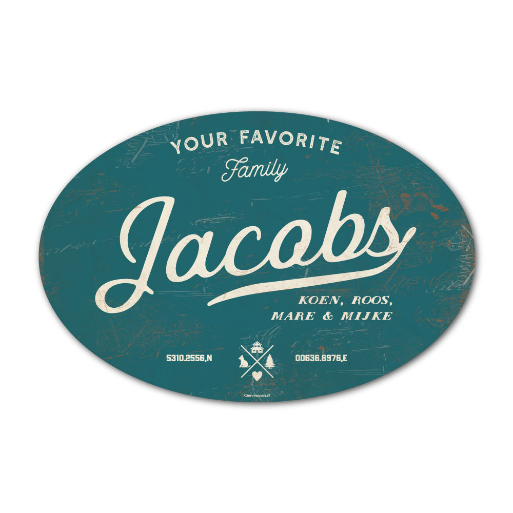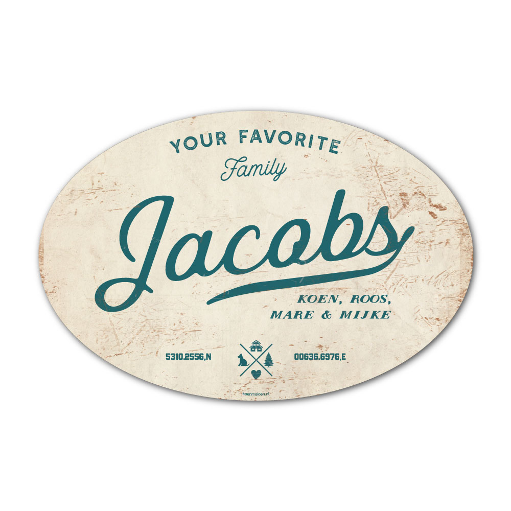 Mooi blauw en wit “vintage” ovaal naambordje met jouw achternaam, voornamen, coördinaten en huisnummer. Geïnspireerd door oude borden. Stoer en origineel naambordje voor bij de voordeur van jouw huis. Maar natuurlijk ook leuk en origineel als cadeau voor iemand die net verhuisd is (housewarming), voor de (nieuwe) mancave.