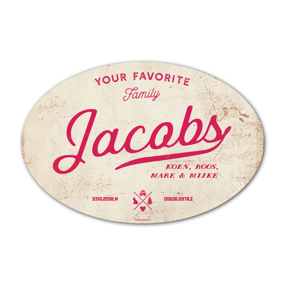 Mooi roze en wit “vintage” ovaal naambordje met jouw achternaam, voornamen, coördinaten en huisnummer. Geïnspireerd door oude borden. Stoer en origineel naambordje voor bij de voordeur van jouw huis. Maar natuurlijk ook leuk en origineel als cadeau voor iemand die net verhuisd is (housewarming), voor de (nieuwe) mancave.