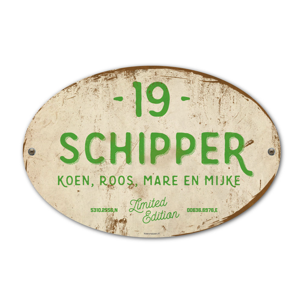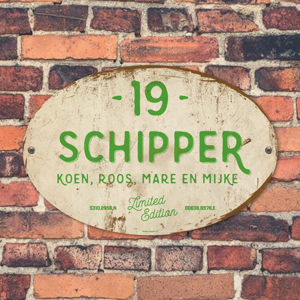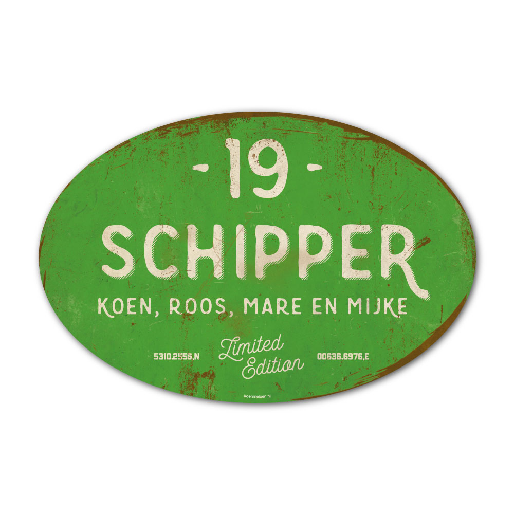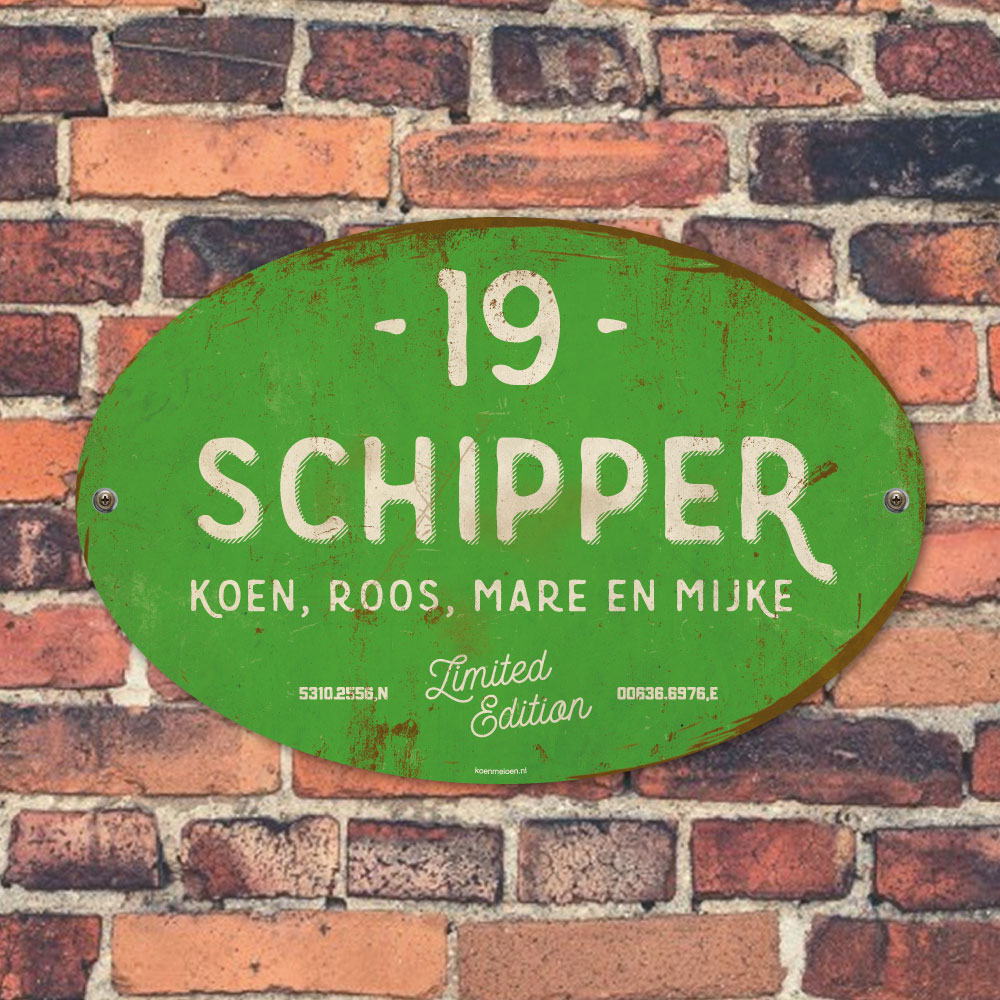 Naambordje voordeur Schipper – Licht Groen Wit