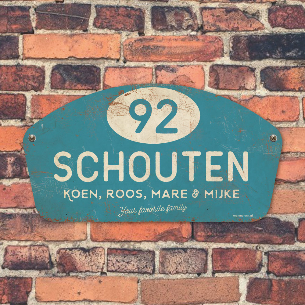 Mooi blauw en wit “vintage” naambordje met jouw achternaam, voornamen en huisnummer . Geïnspireerd door oude rallyborden. Stoer en origineel naambordje voor bij de voordeur van jouw huis. Maar natuurlijk ook leuk en origineel als cadeau voor iemand die net verhuisd is (housewarming), voor de (nieuwe) mancave, tuinhuis, paardenstal, hondenhok etc.