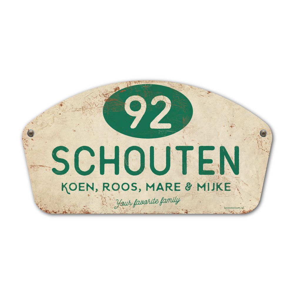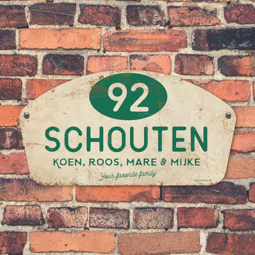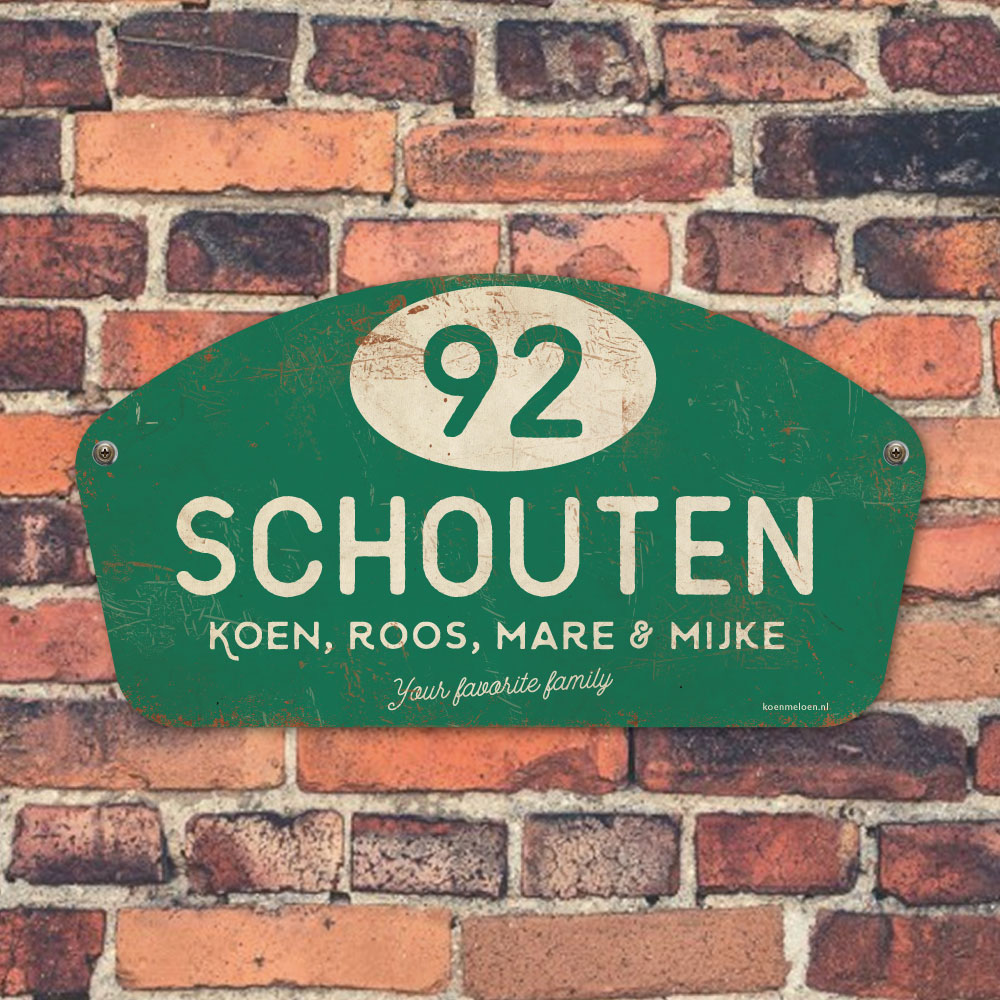 Mooi groen en wit “vintage” naambordje met jouw achternaam, voornamen en huisnummer . Geïnspireerd door oude rallyborden. Stoer en origineel naambordje voor bij de voordeur van jouw huis. Maar natuurlijk ook leuk en origineel als cadeau voor iemand die net verhuisd is (housewarming), voor de (nieuwe) mancave, tuinhuis, paardenstal, hondenhok etc.