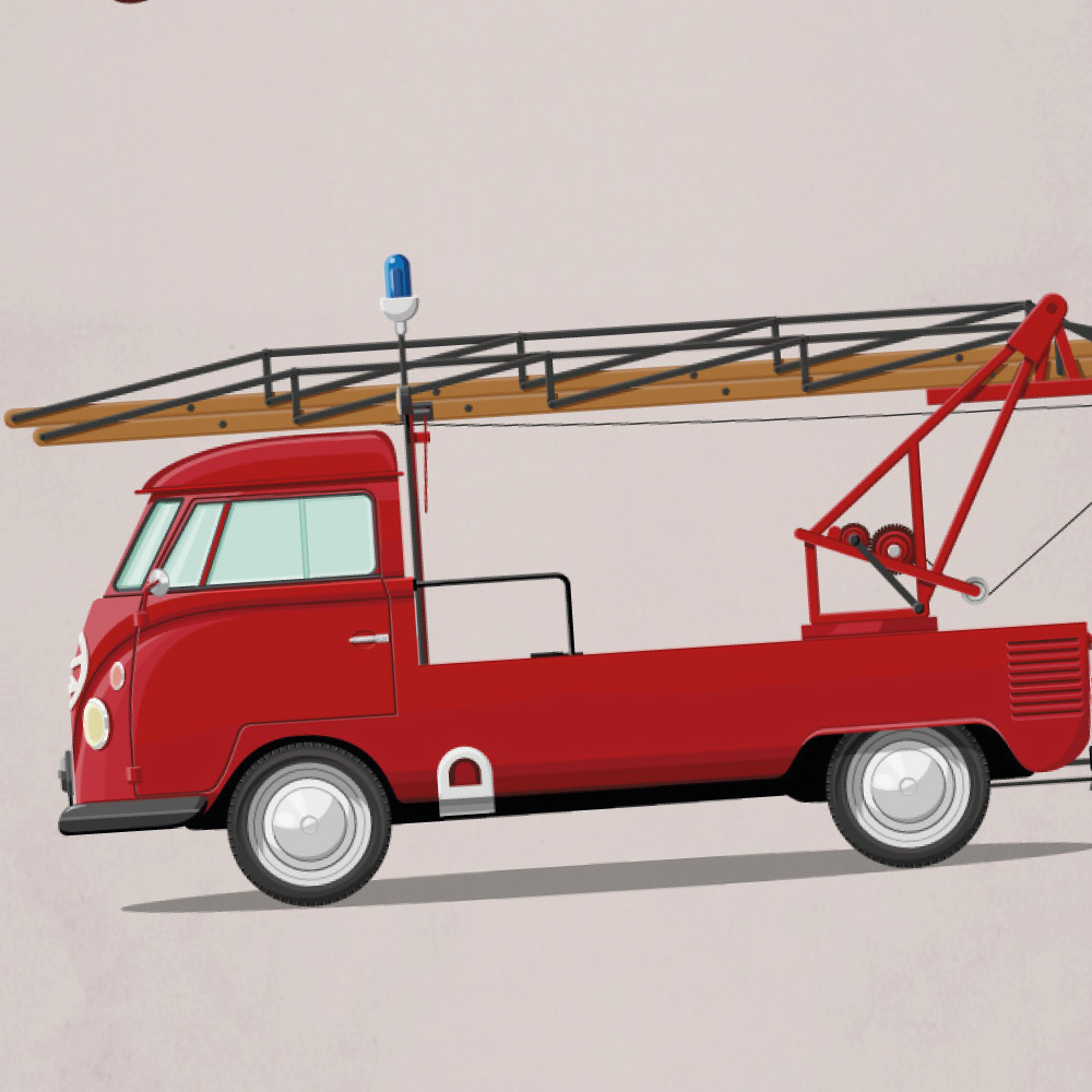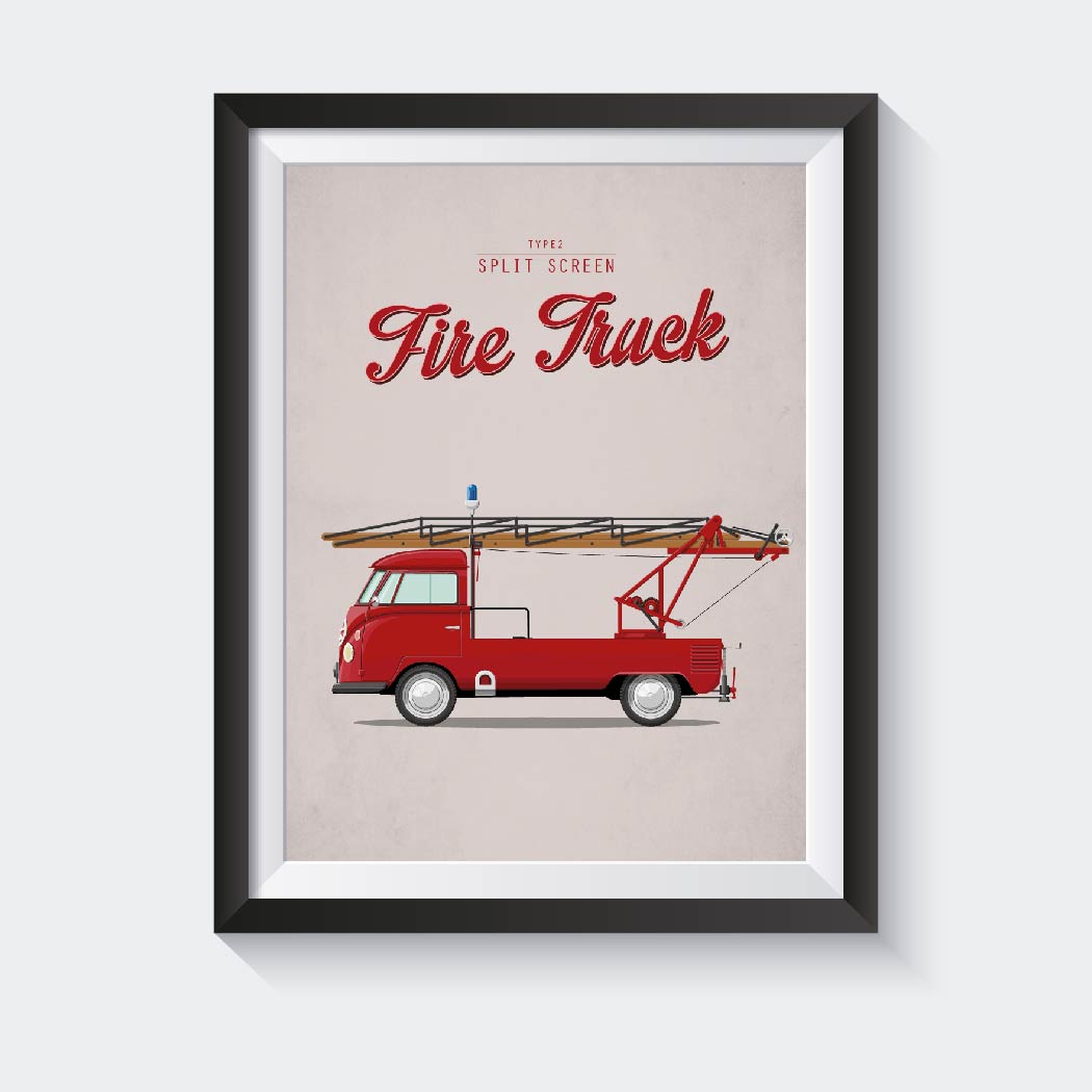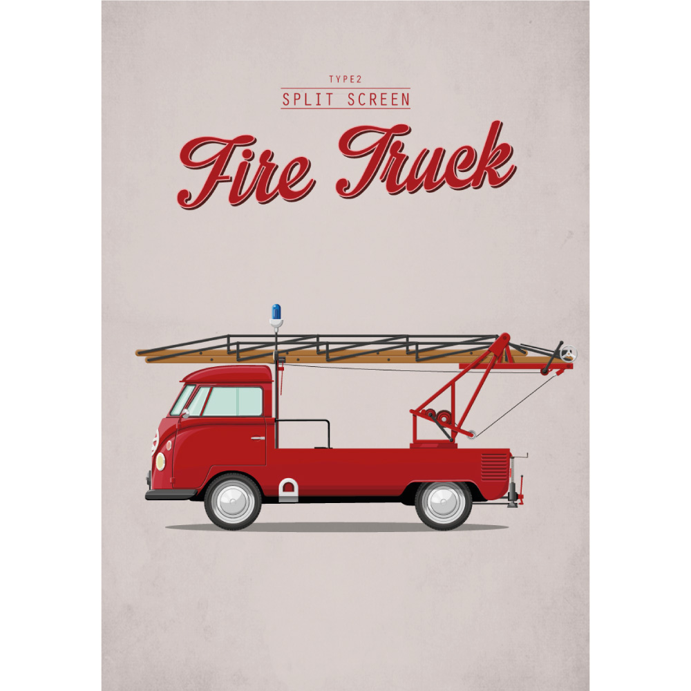 Mooie illustratie van een split screen, gemaakt door Koenmeloen. Iedereen kent de t1 bus. Maar er zijn zo veel andere leuke uitvoeringen van de bekende split screen. Dit is de “Fire Truck”. Leuk voor de liefhebber, als decoratie in je woonkamer en werkkamer, maar staat natuurlijk ook erg leuk in een kinderkamer.