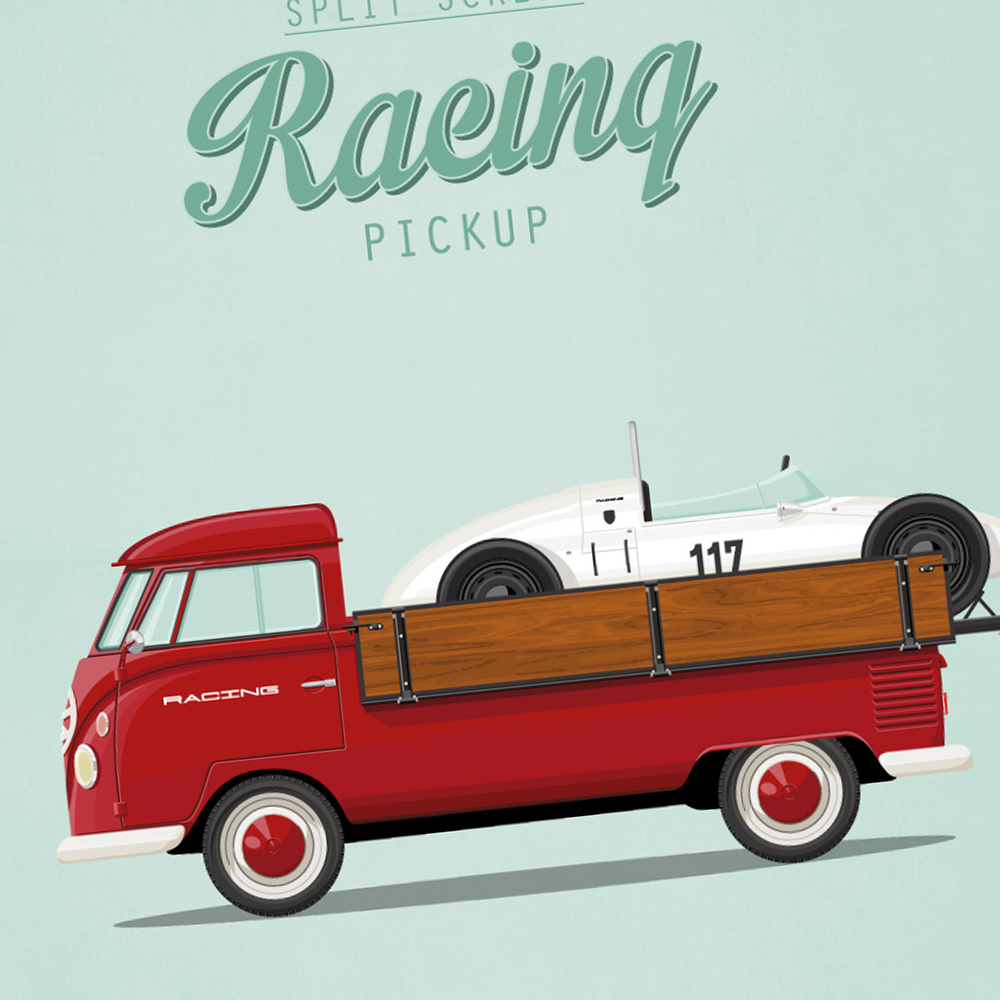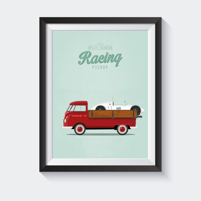 Mooie illustratie van een split screen, gemaakt door Koenmeloen. Iedereen kent de t1 bus. Maar er zijn zo veel andere leuke uitvoeringen van de bekende split screen. Dit is de “Racing”. Leuk voor de liefhebber, als decoratie in je woonkamer en werkkamer, maar staat natuurlijk ook erg leuk in een kinderkamer.