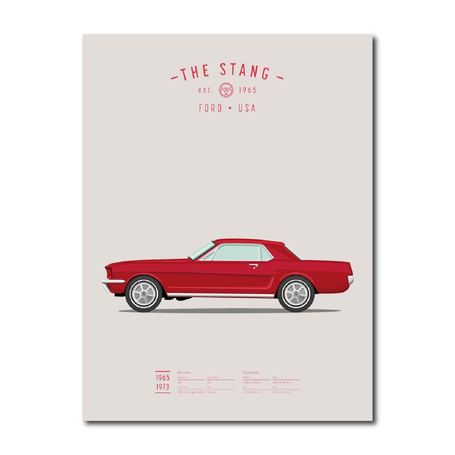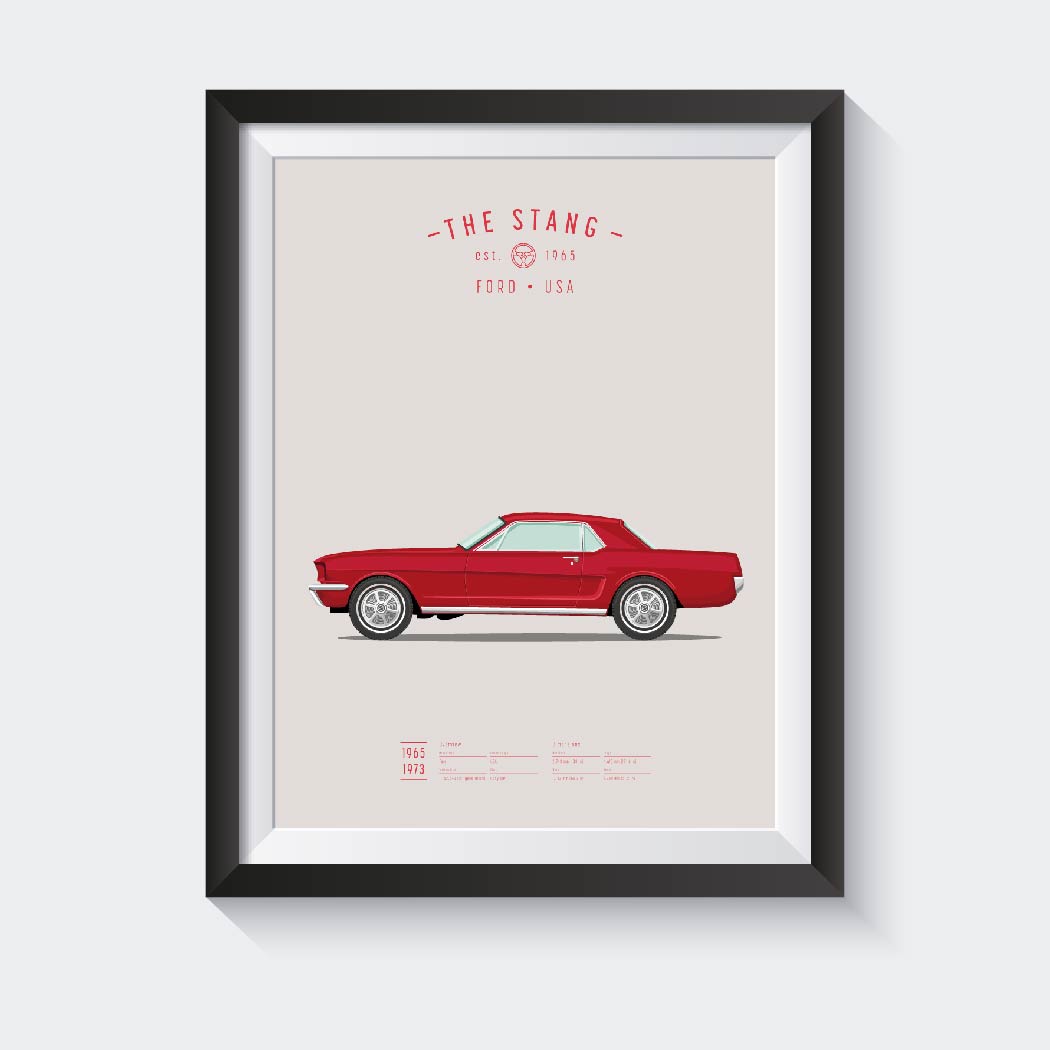 Mooie illustratie van een rode Mustang, gemaakt door Koenmeloen. Leuk voor de liefhebber, als decoratie in bijvoorbeeld je woonkamer en werkkamer.